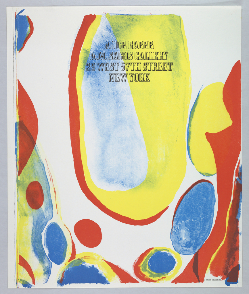Poster, Poster for Alice Baber Exhibition at A.M. Sachs Gallery, New York; Printed by Atelier Mourlot (United States); USA; color lithograph on paper; Gift of the Museum of Graphic Art, New York; 1973-39-9