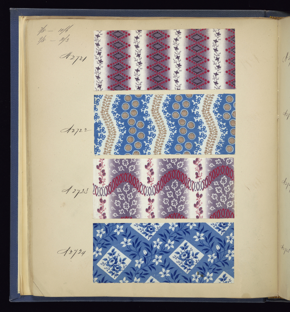 This is a Sample book. It is dated 1840s and we acquired it in 1973. Its medium is paper, cotton and its technique is printed. It is a part of the Textiles department.