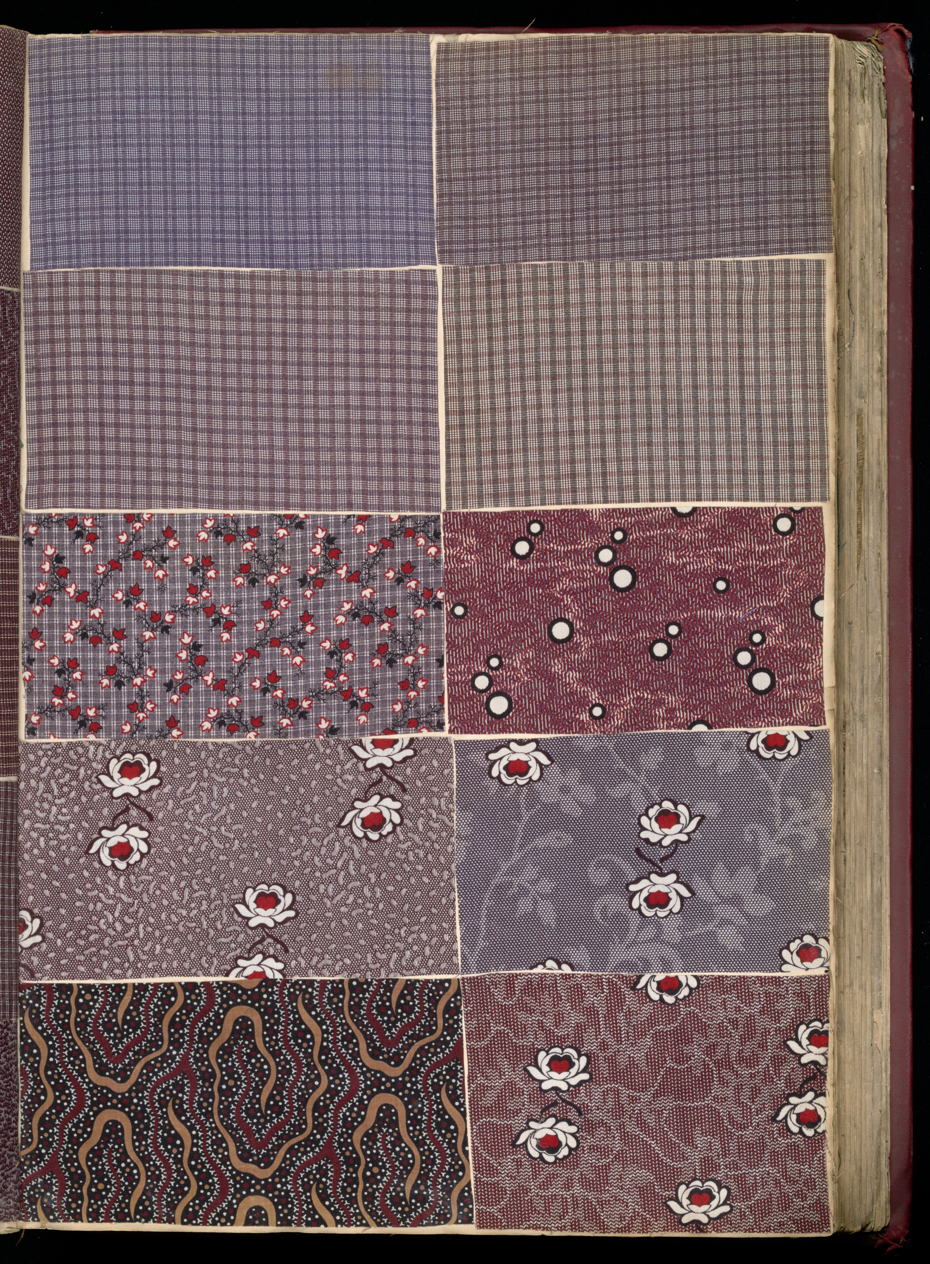 Scrapbook Of Textile Swatches (France); paper, printed cotton textile samples; H x W x D: 51.5 × 35 × 8.5 cm (20 1/4 × 13 3/4 × 3 3/8 in.); Gift of Virginia Hamill Johnson; 1973-6-8