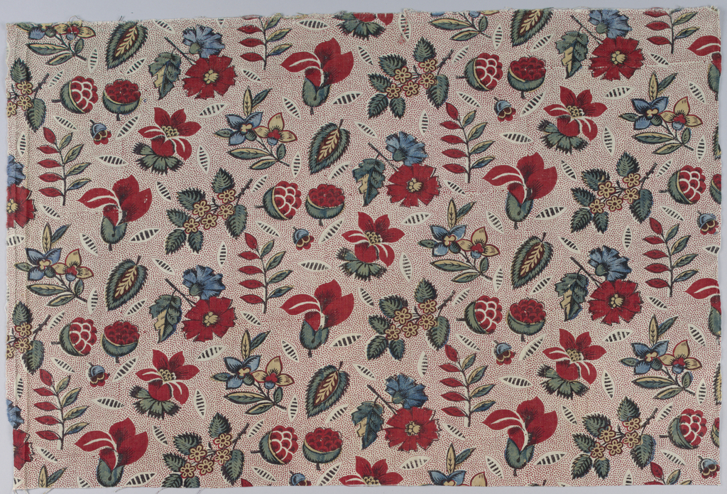This is a Textile. It is dated 1760–70 and we acquired it in 1973. Its medium is linen, cotton and its technique is block printed on plain weave. It is a part of the Textiles department.