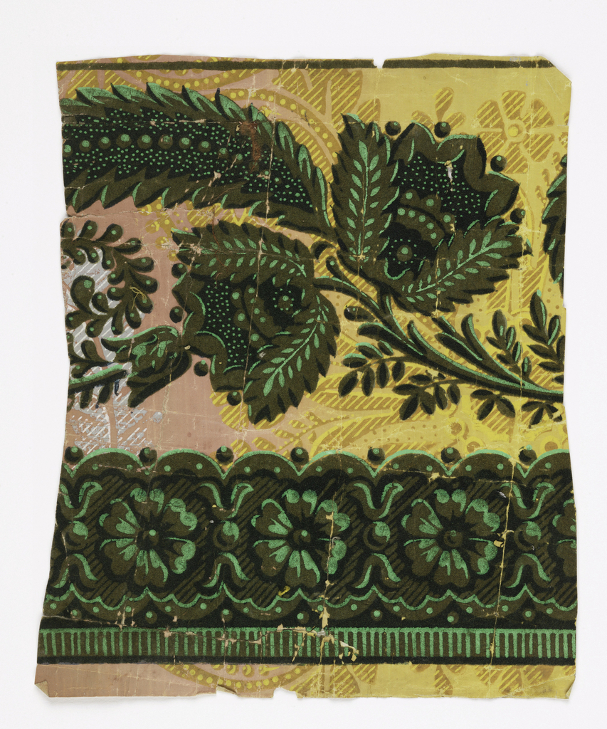 This is a Border. It is dated 1820–35 and we acquired it in 1974. Its medium is block-printed. It is a part of the Wallcoverings department.