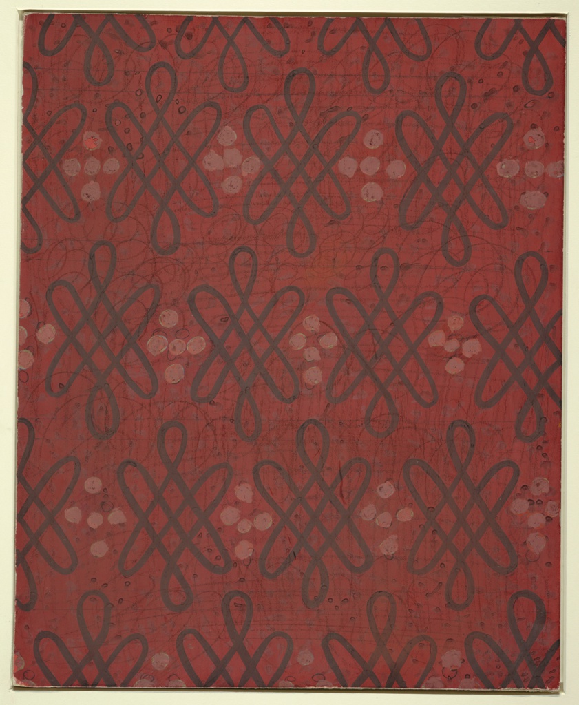 Drawing, Design for Carpet, Auditorium, International Casino, 1530 Broadway, New York, NY; Architect: Thomas W. Lamb (1871 – 1942), Nicholas H. Weiss; Office of Donald Deskey (American, 1894–1989); Client: Louis Brecker, International Casino; USA; brush and brown, black and red gouache, black crayon on off-white illustration board; 43 x 34.9 cm (16 15/16 x 13 3/4 in.); Gift of Donald Deskey; 1975-11-40