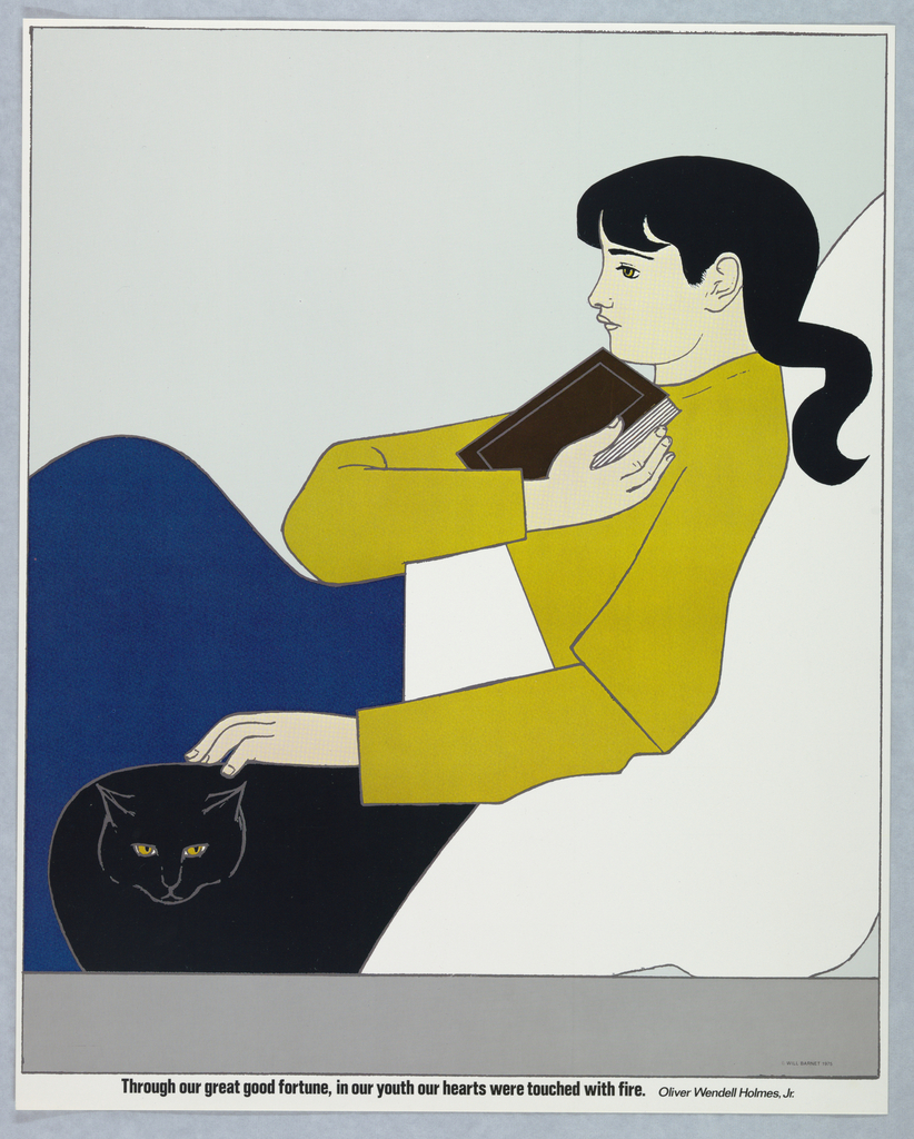 Printed in black, lower right: © WILL BARNET 1975; in black, bottom margin: Through our great good fortune, in our youth our hearts were touched with fire. Oliver Wendell Holmes, Jr.