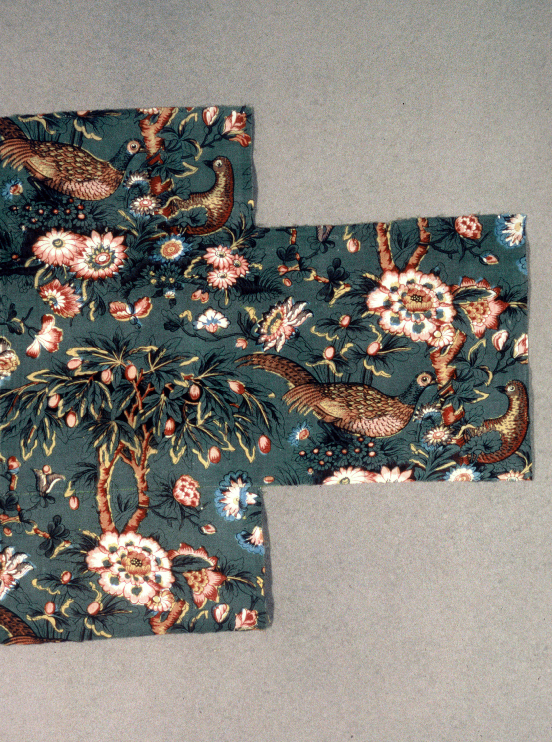 This is a Textile. It is dated ca. 1815 and we acquired it in 1975. Its medium is cotton and its technique is block printed on plain weave. It is a part of the Textiles department.