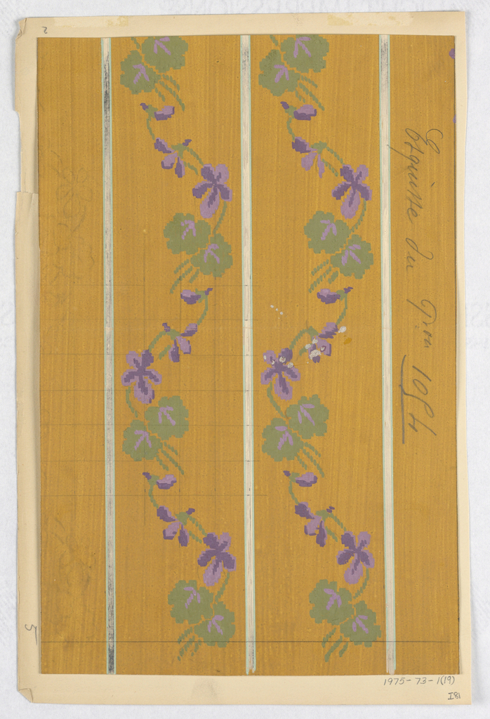 This is a Drawing. It is dated late 19th century and we acquired it in 1975. Its medium is brush and gouache on cream paper, mounted on cream paper. It is a part of the Drawings, Prints, and Graphic Design department.