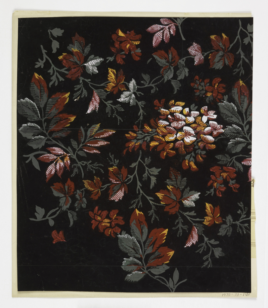 This is a Drawing. It is dated late 19th century and we acquired it in 1975. Its medium is brush and gouache, graphite on cream paper, mounted on cream paper. It is a part of the Drawings, Prints, and Graphic Design department.