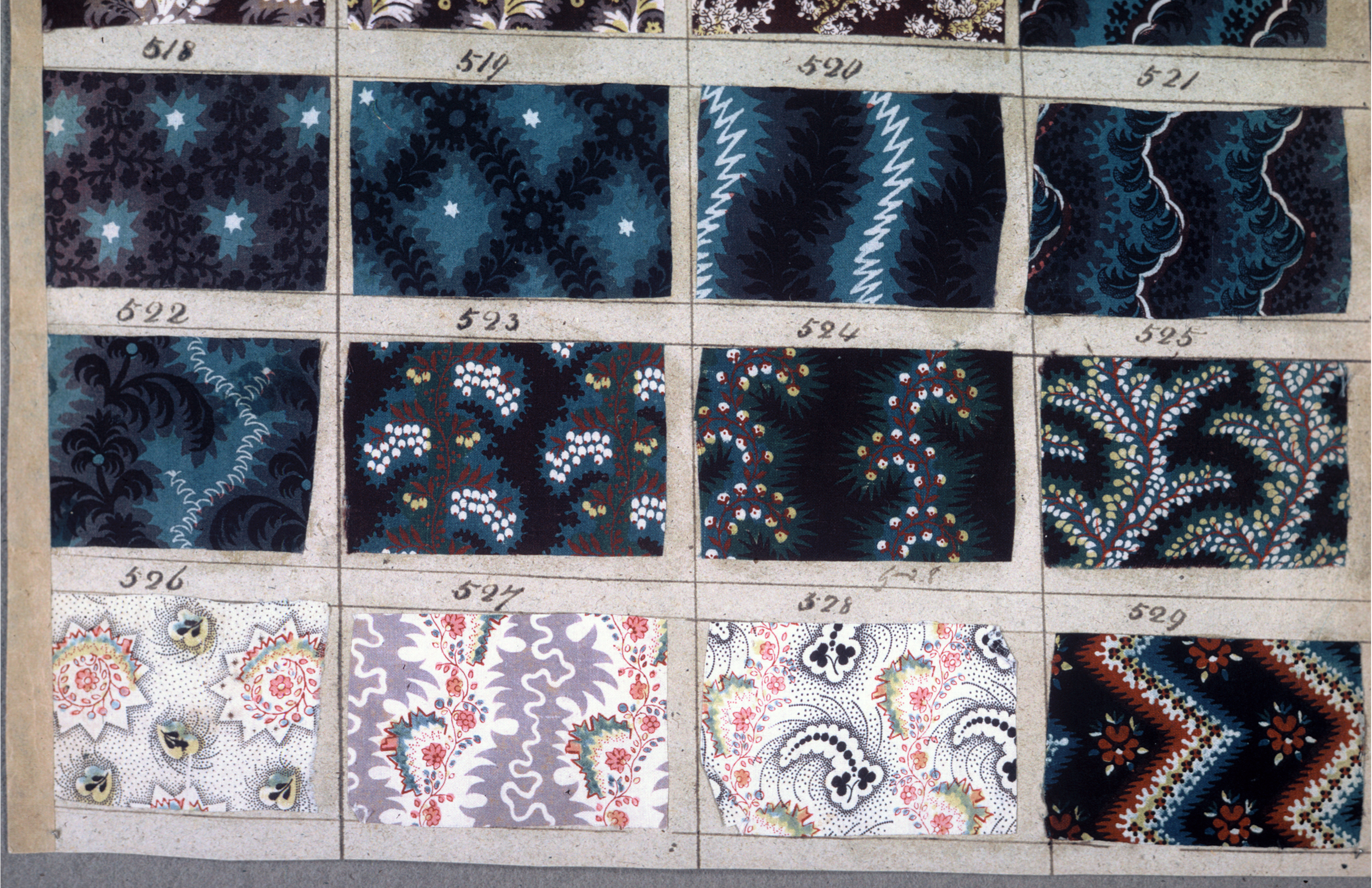 Textile (England); paper, cotton; H x W (each swatch, approximate): 8 x 5.5 cm (3 1/8 x 2 3/16 in.); Gift of Mrs. Lincoln Johnson; 1975-85-7