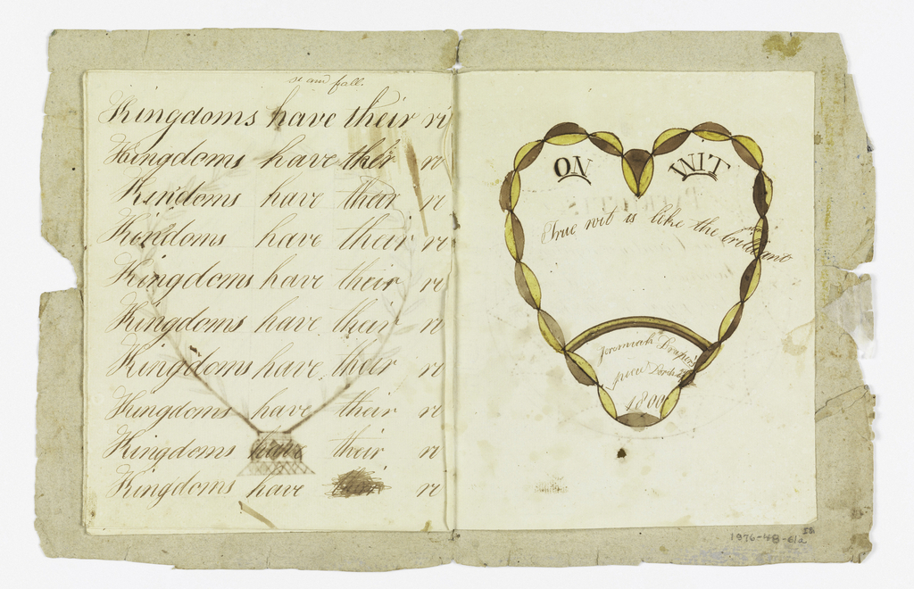 Manuscript, Jeremiah Draper's Book; Calligrapher: Jeremiah Draper (American, active 1800s); pen and black ink on laid paper; H x W: 23.2 x 35.5 cm (9 1/8 in. x 14 in.), irregular; Gift of Thomas Strahan Company; 1976-48-61-2