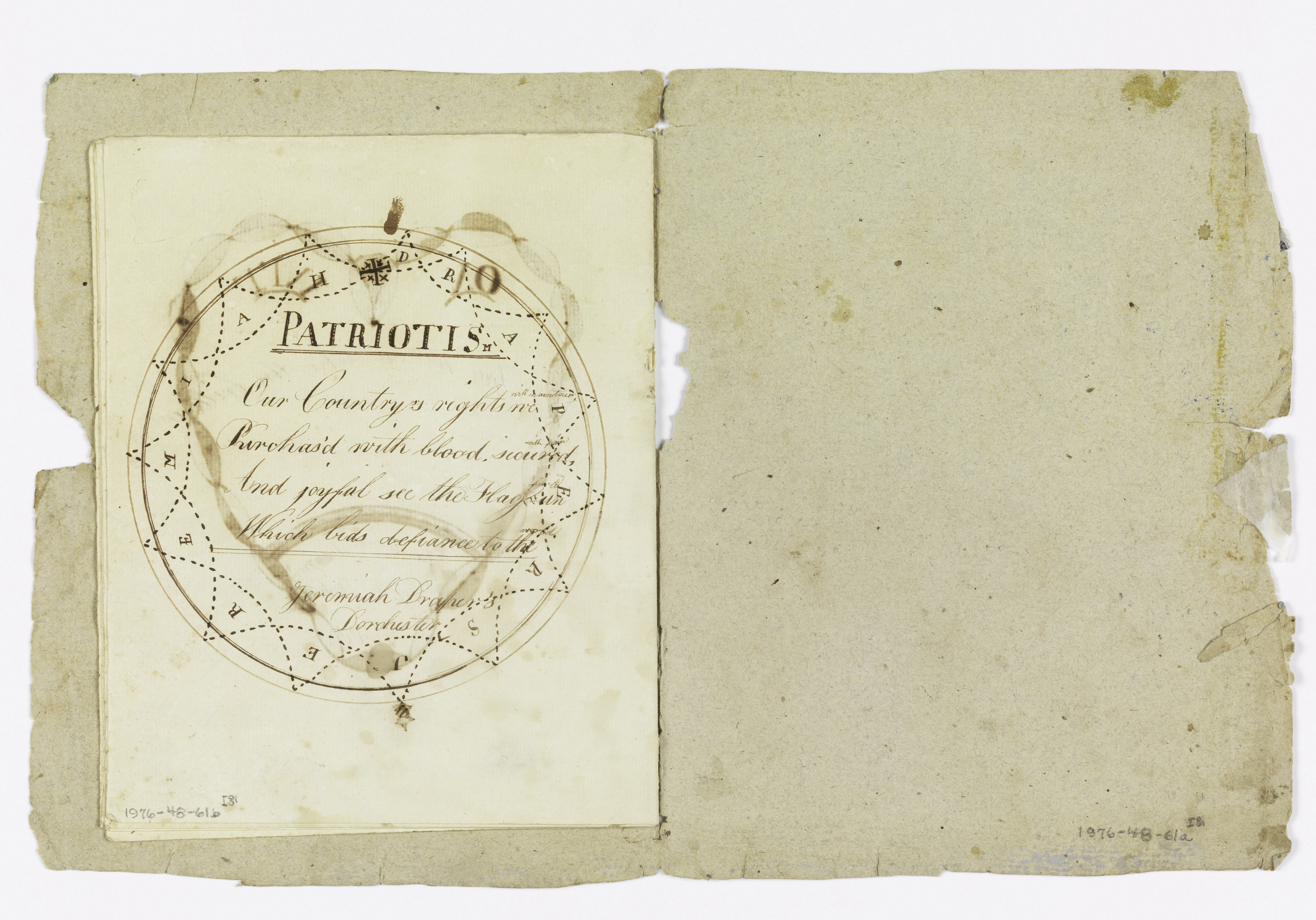 Manuscript, Jeremiah Draper's Book; Calligrapher: Jeremiah Draper (American, active 1800s); pen and black ink on laid paper; H x W: 23.2 x 35.5 cm (9 1/8 in. x 14 in.), irregular; Gift of Thomas Strahan Company; 1976-48-61-2