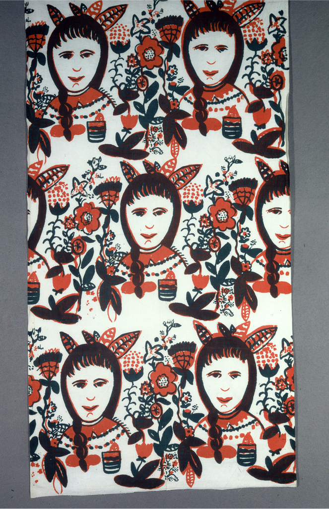 This is a Textile. It was student at The Educational Alliance and made by A. Nedby. It is dated 1930s and we acquired it in 1976. Its medium is cotton and its technique is hand screen printed on plain weave. It is a part of the Textiles department.
