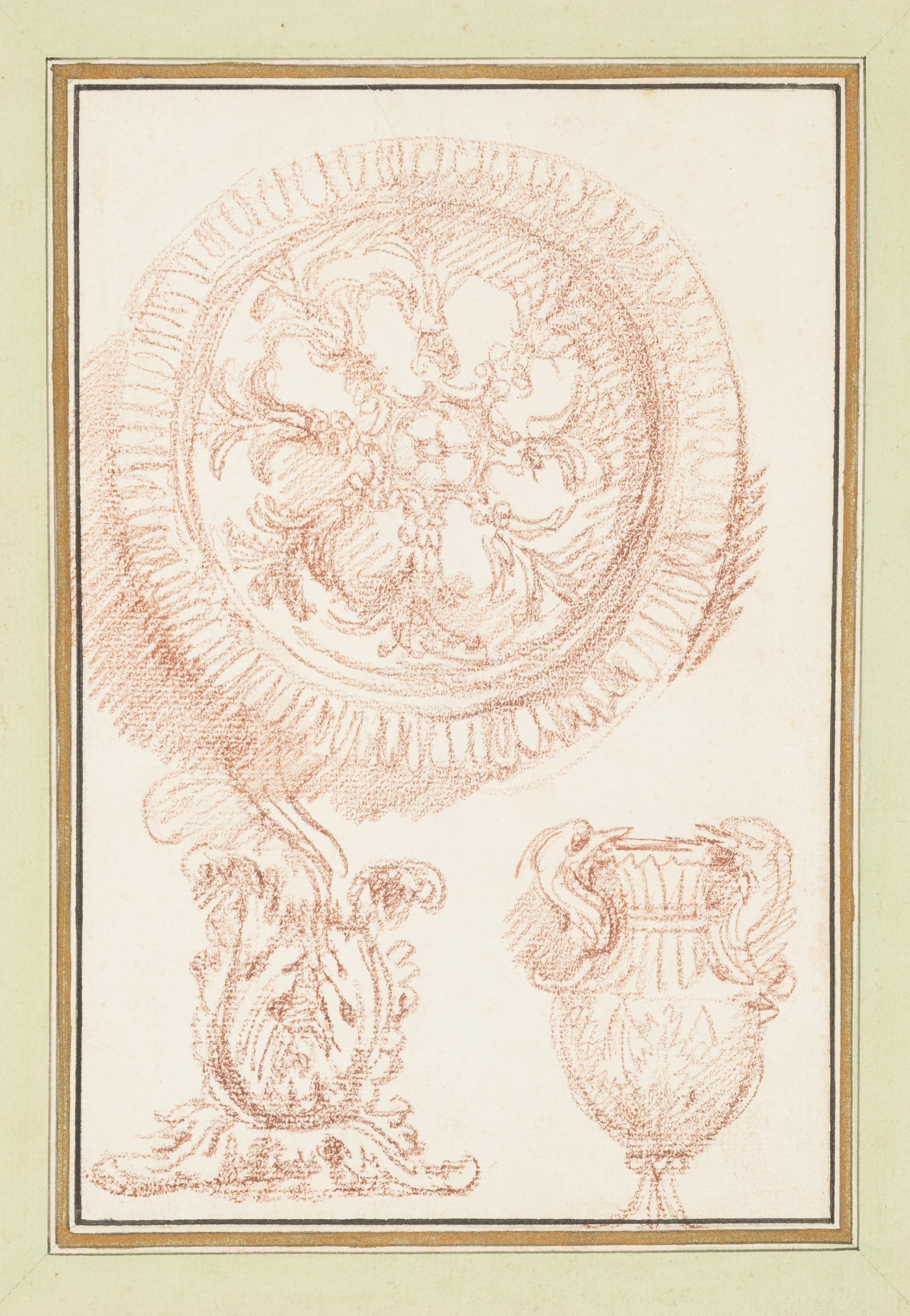 Drawing, Urn and leaf-like ornament; Jean-Robert Ango (French, active in Rome 1759 –1770, d. 1773); France; red chalk on paper; Gift of Noah Butkin; 1977-110-4-30