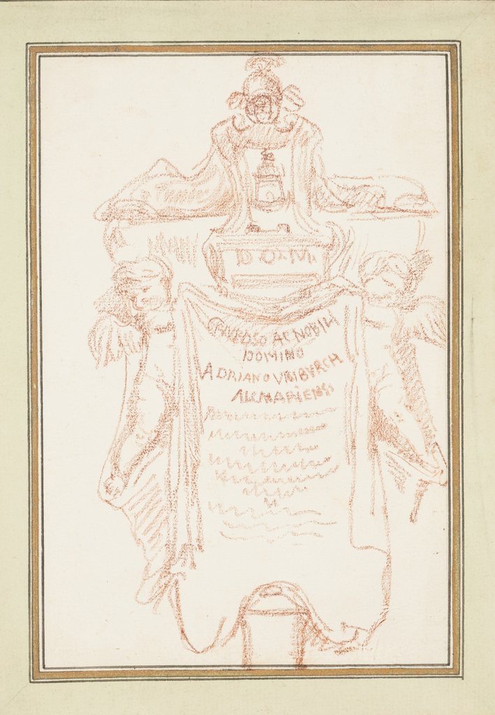 Drawing, Detail of tomb monument; Jean-Robert Ango (French, active in Rome 1759 –1770, d. 1773); France; red chalk on paper; Gift of Noah Butkin; 1977-110-4-37