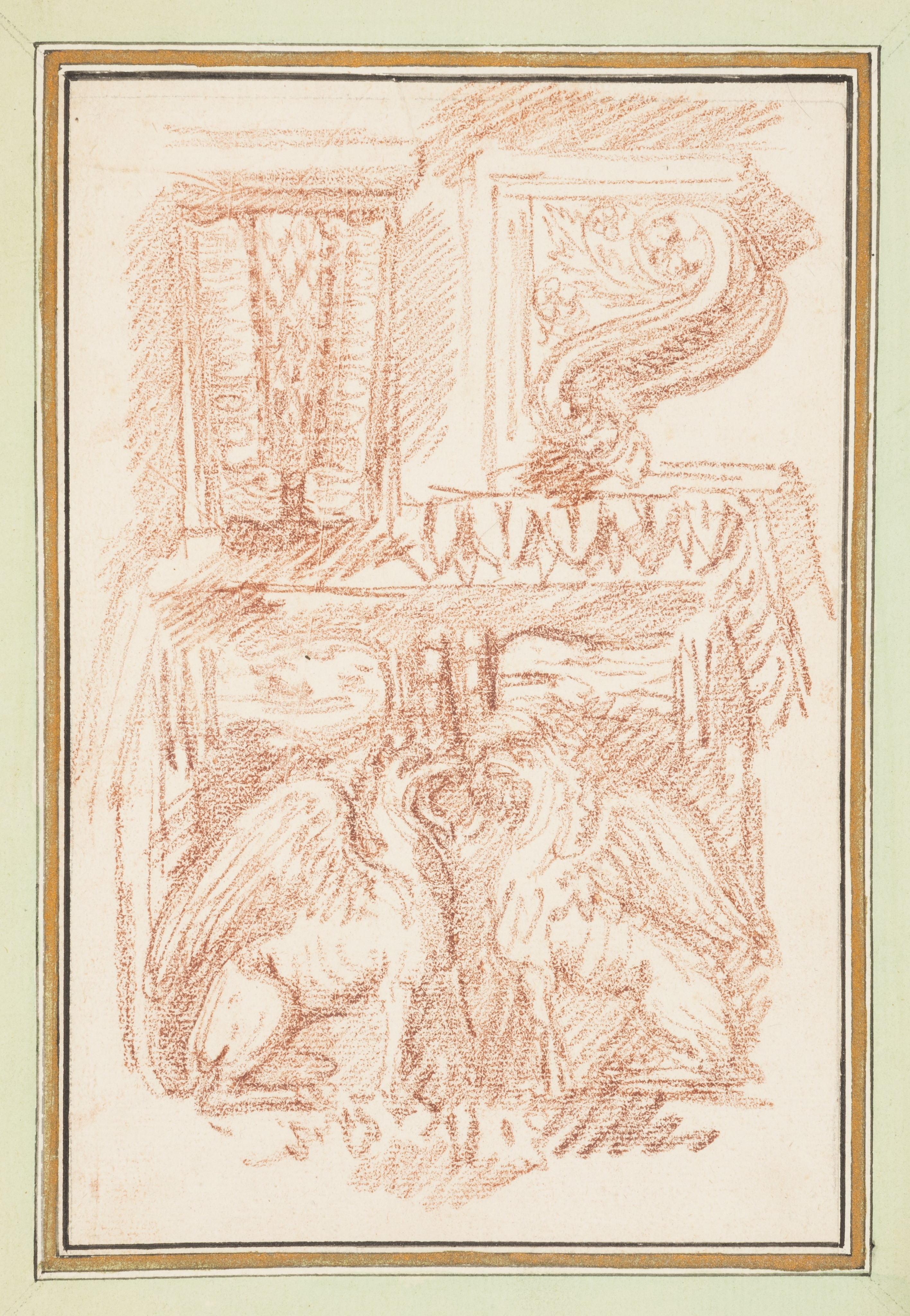 Bound Drawing, Brackets and a Column Capital with Eagles, in Dessins d'Ango Ornements et Architecture (Drawings of Ornaments and Architecture by Ango); Jean-Robert Ango (French, active in Rome 1759 –1770, d. 1773); France; red chalk on cream laid paper; 1977-110-4-4