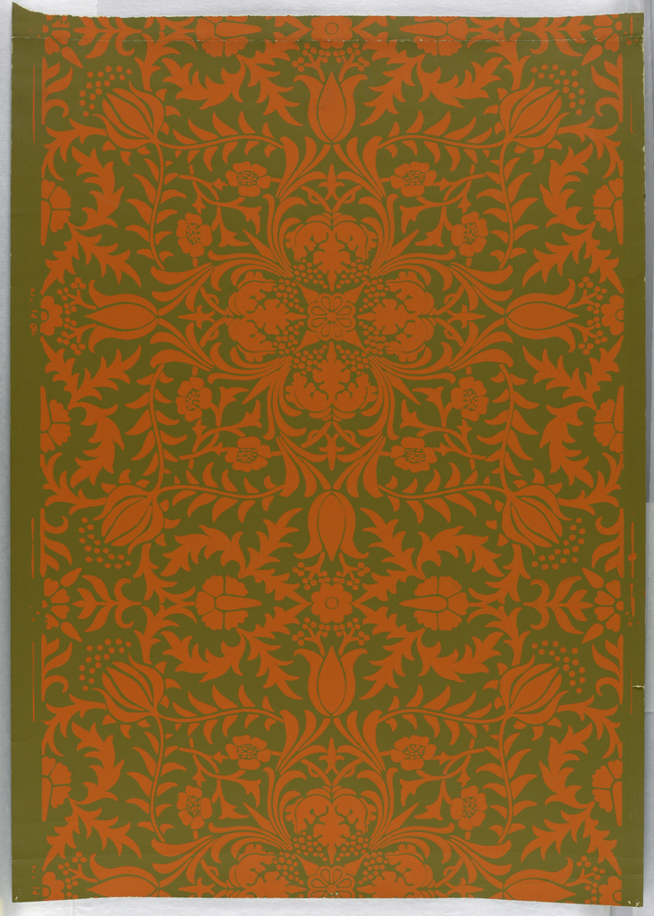 This is a Sidewall. It was designed by Morris & Co.. It is dated 1972 and we acquired it in 1977. Its medium is block-printed on paper. It is a part of the Wallcoverings department.