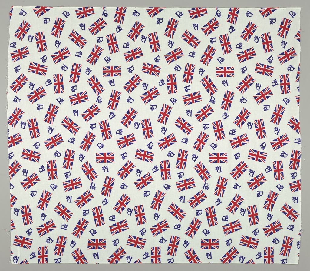 This is a Commemorative textile. It is dated 1977 and we acquired it in 1977. Its technique is screen printed on plain weave. It is a part of the Textiles department.