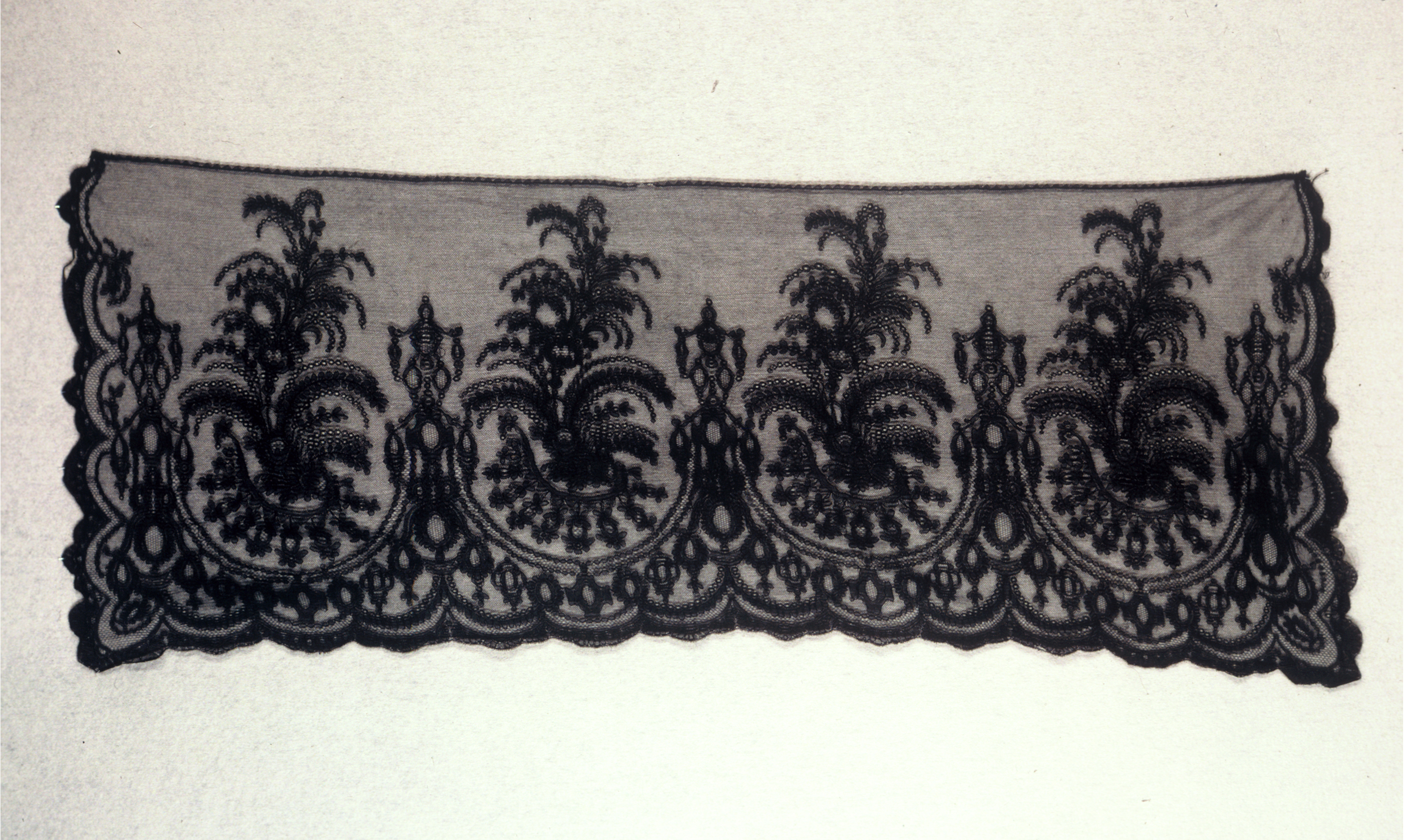This is a Bonnet veil. It is dated late 19th century and we acquired it in 1977. Its medium is silk and its technique is machine made bobbin lace. It is a part of the Textiles department.