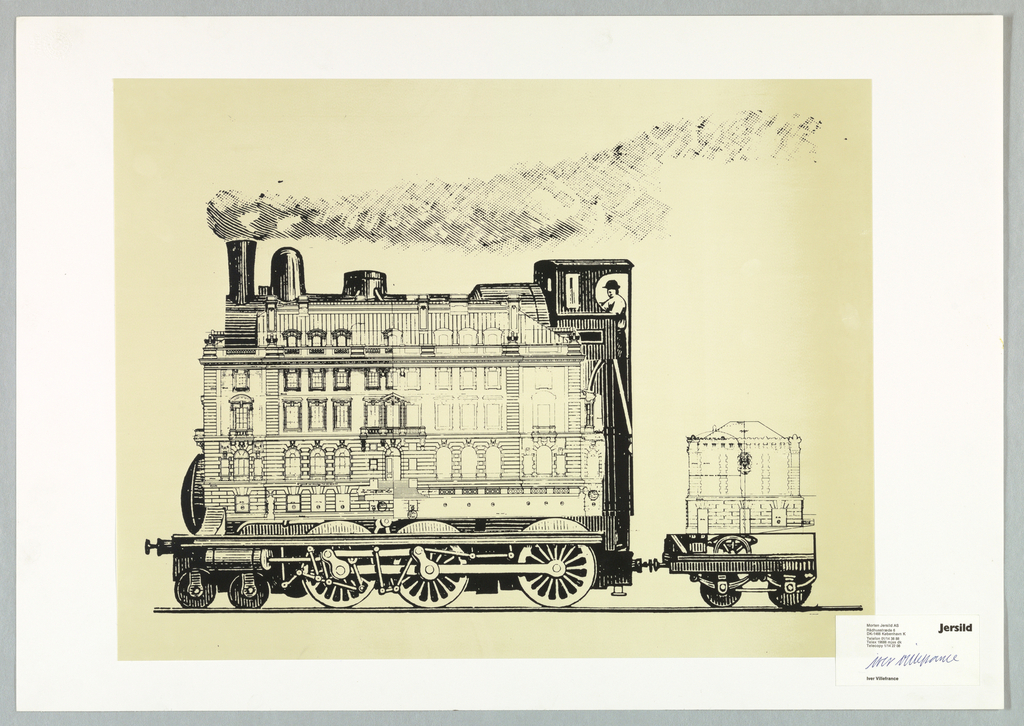 This is a embellishment. It was created by Iver Villefrance and made for Cooper Hewitt, Smithsonian Design Museum. It is dated ca. 1977 and we acquired it in 1978. It is a part of the Drawings, Prints, and Graphic Design department.