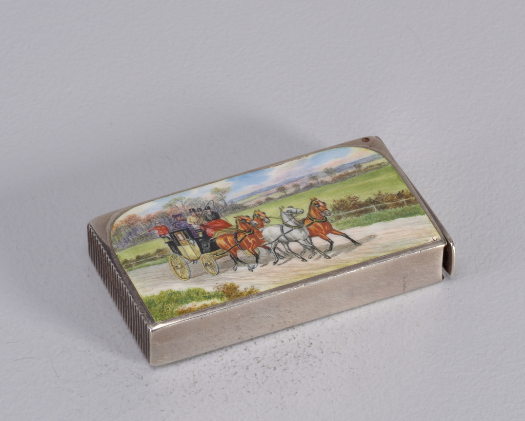 This is a Matchsafe. We acquired it in 1978. Its medium is silver. It is a part of the Product Design and Decorative Arts department.