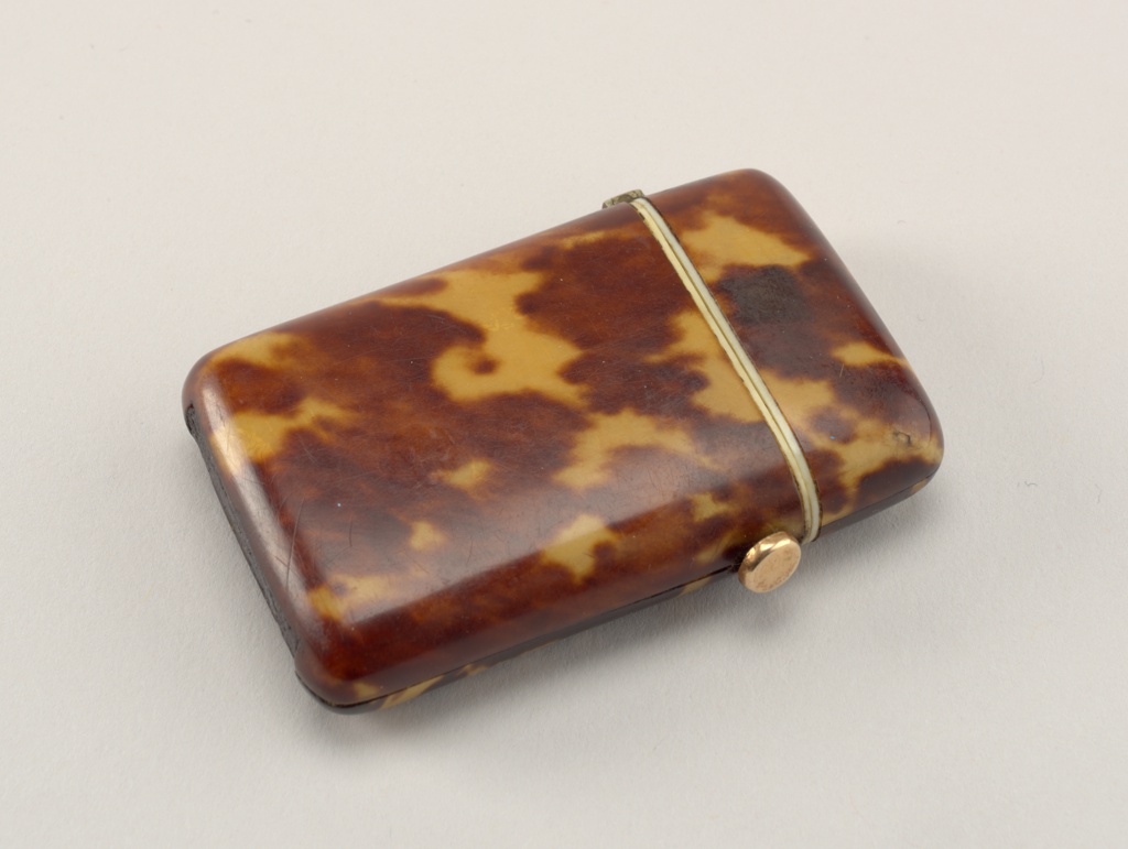 Matchsafe; shaped tortoiseshell, bone, gold, metal; 6 x 4.2 x 1.2 cm (2 3/8 x 1 5/8 x 1/2 in. ); Gift of Stephen W. Brener and Carol B. Brener; 1978-146-304