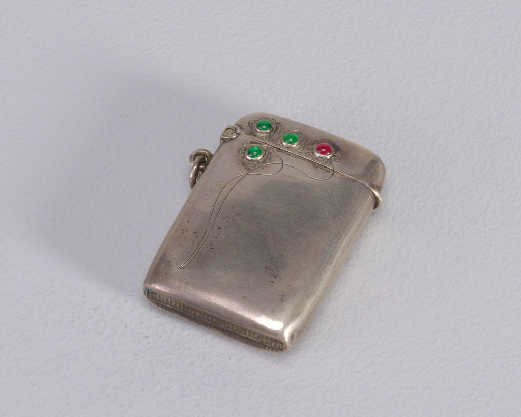 This is a Matchsafe. We acquired it in 1978. Its medium is silver. It is a part of the Product Design and Decorative Arts department.