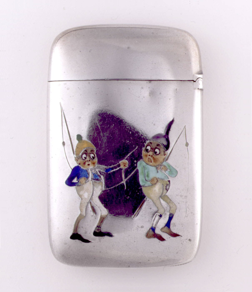 "Brownies" Characters Matchsafe; Manufactured by Gorham Manufacturing Company (United States); USA; silver, enamel; 6.1 x 4 x 1 cm (2 3/8 x 1 9/16 x 3/8 in. ); Gift of Stephen W. Brener and Carol B. Brener; 1978-146-55