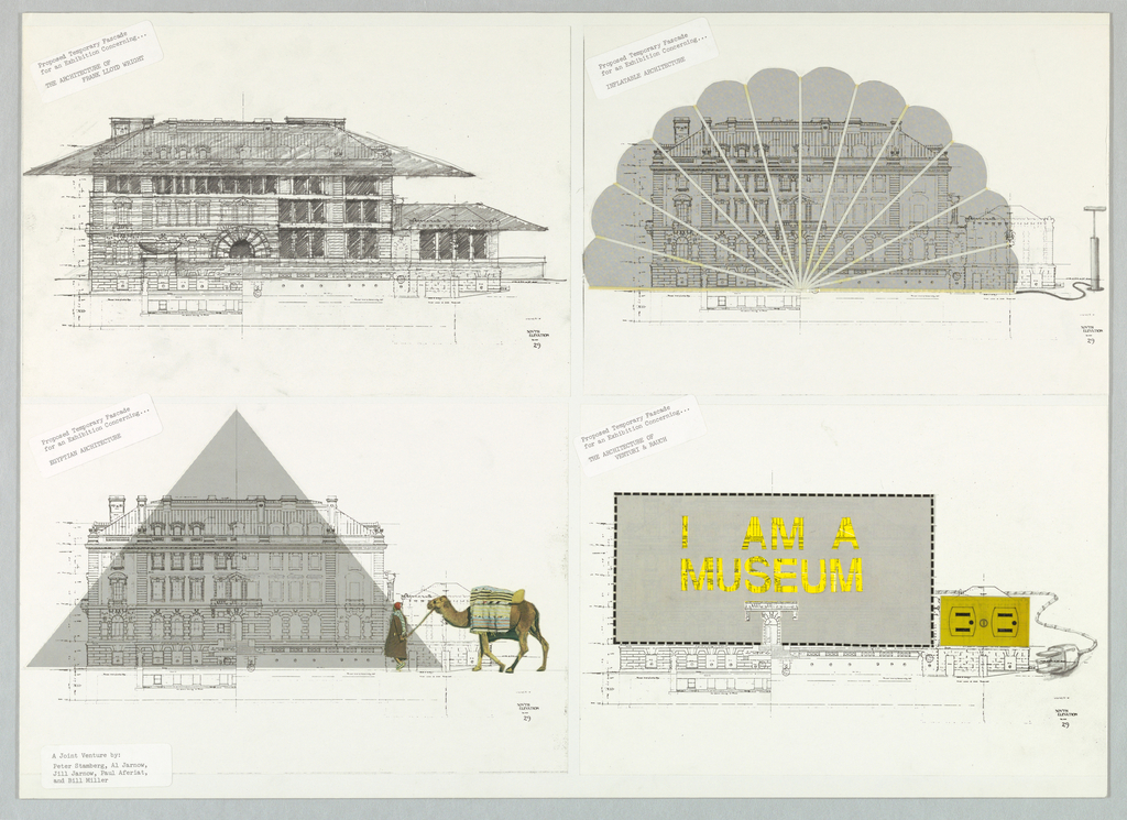 This is a embellishment. It was created by Peter Stambourg, Al Jarnow, Jill Jarnow, William Miller and Paul Afferiat and made for Cooper Hewitt, Smithsonian Design Museum. It is dated ca. 1977 and we acquired it in 1978. It is a part of the Drawings, Prints, and Graphic Design department.