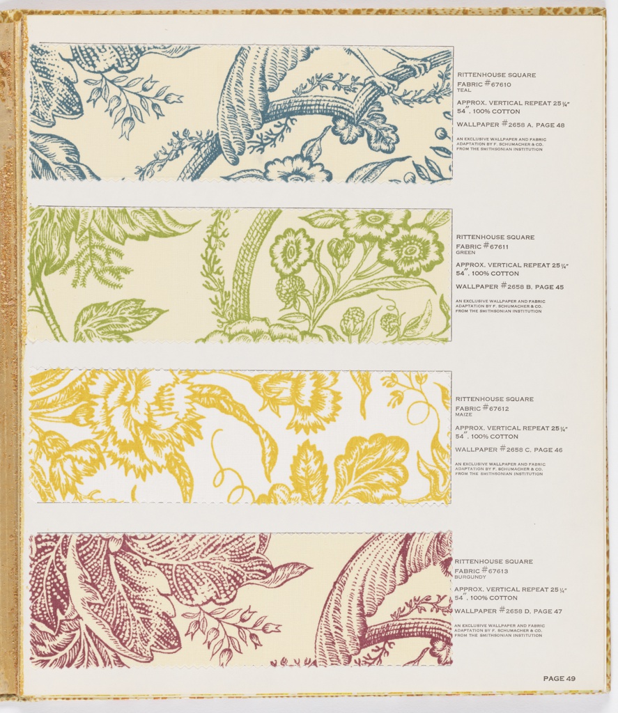 <ref name=CH>{{cite web |url=https://www-5.collection.cooperhewitt.org/objects/18498203/ |title=Sample Book, Wallpaper and Fabric Adaptations from the Smithsonian Institution |author=Cooper Hewitt, Smithsonian Design Museum |accessdate=19 December 2025 |publisher=Smithsonian Institution}}</ref>