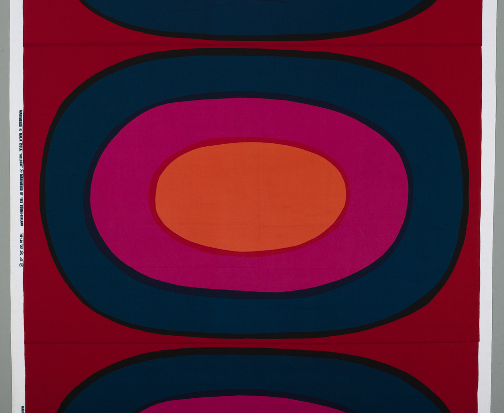 This is a Textile. It was designed by Maija Isola and manufactured by Marimekko Oy. It is dated 1963 and we acquired it in 1979. Its medium is cotton and its technique is screen printed on plain weave. It is a part of the Textiles department.