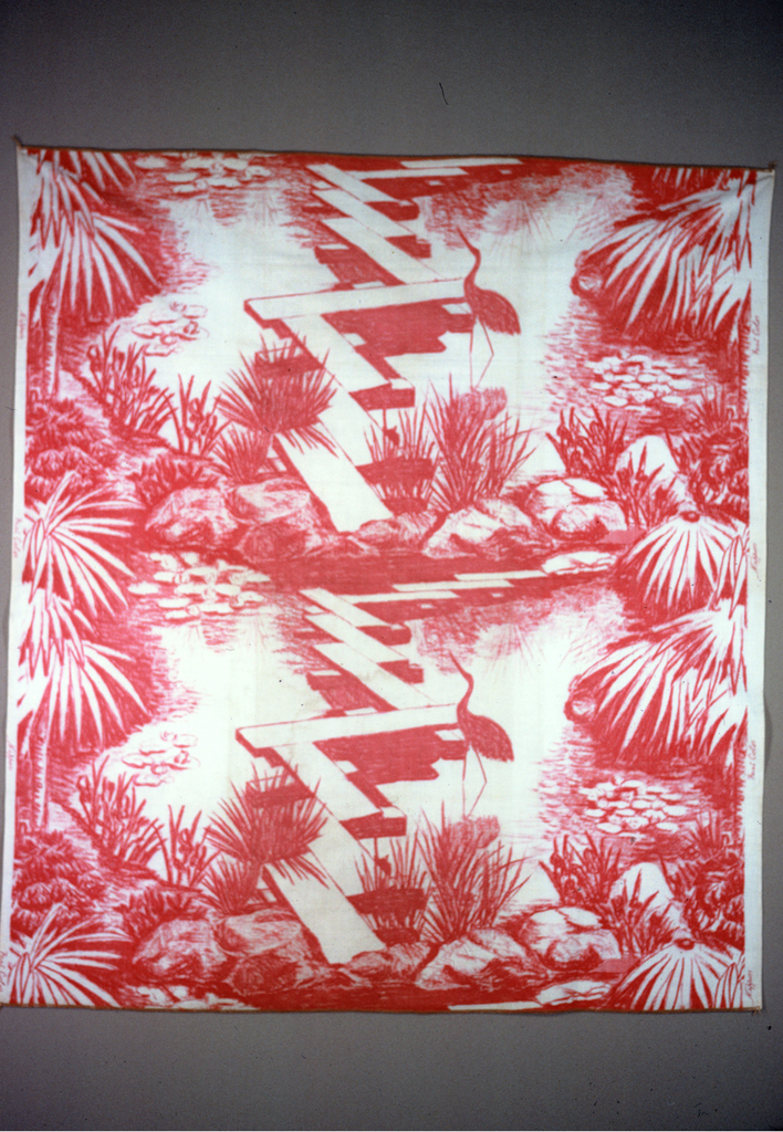 Textile, Nippon; Company: F. Schumacher & Co. (United States); USA; cotton; H x W x D (a): 32.5 x 22.5 x 1.3 cm (12 13/16 x 8 7/8 x 1/2 in.) Warp x Weft (b): 104 x 91.5 cm (40 15/16 x 36 in.) Warp x Weft (c): 104 x 91.5 cm (40 15/16 x 36 in.) Repeat H (pattern): 52.1 cm (20 1/2 in.); Gift of Mrs. R. Curt Hasenclever; 1979-9-39-a/c