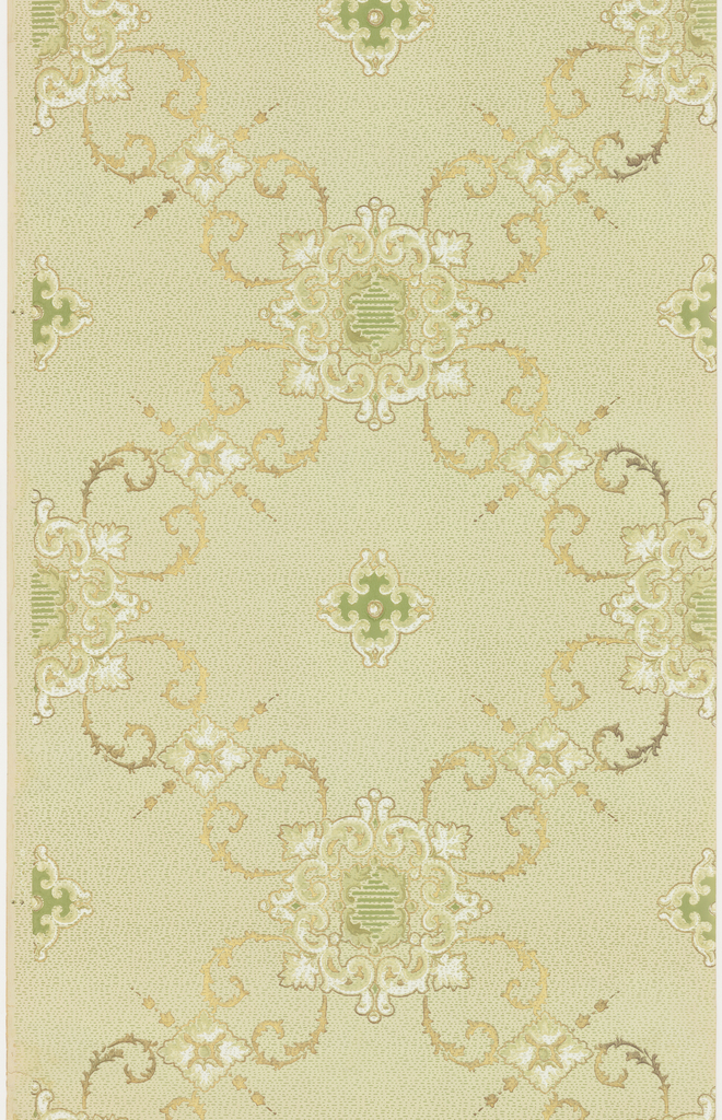 This is a Ceiling paper. It is dated 1905–1915 and we acquired it in 1979. Its medium is machine-printed paper, liquid mica. It is a part of the Wallcoverings department.