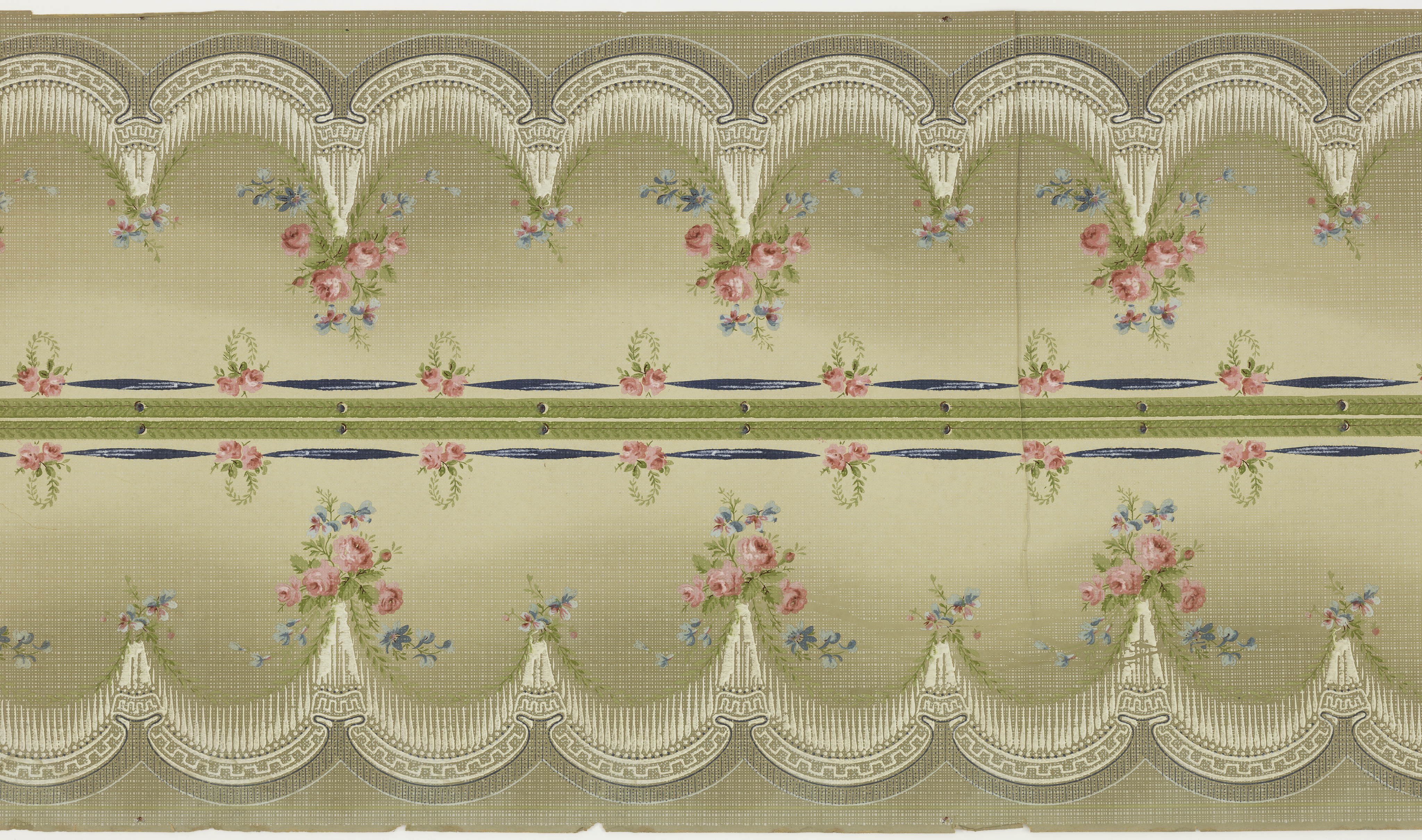 This is a frieze. It is dated 1905–1915 and we acquired it in 1979. Its medium is machine-printed paper. It is a part of the Wallcoverings department.