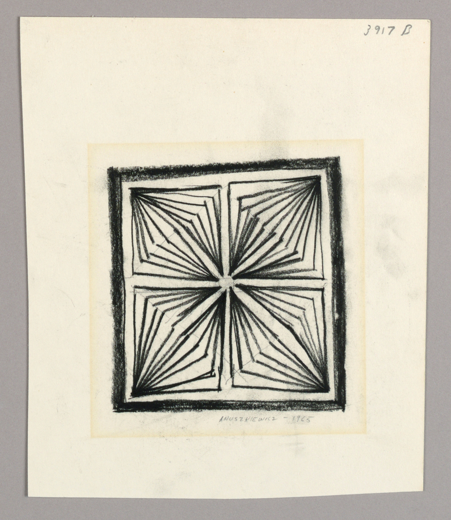 This is a Drawing. It was created by Richard Anuszkiewicz. It is dated 1965 and we acquired it in 1982. It is a part of the Drawings, Prints, and Graphic Design department.