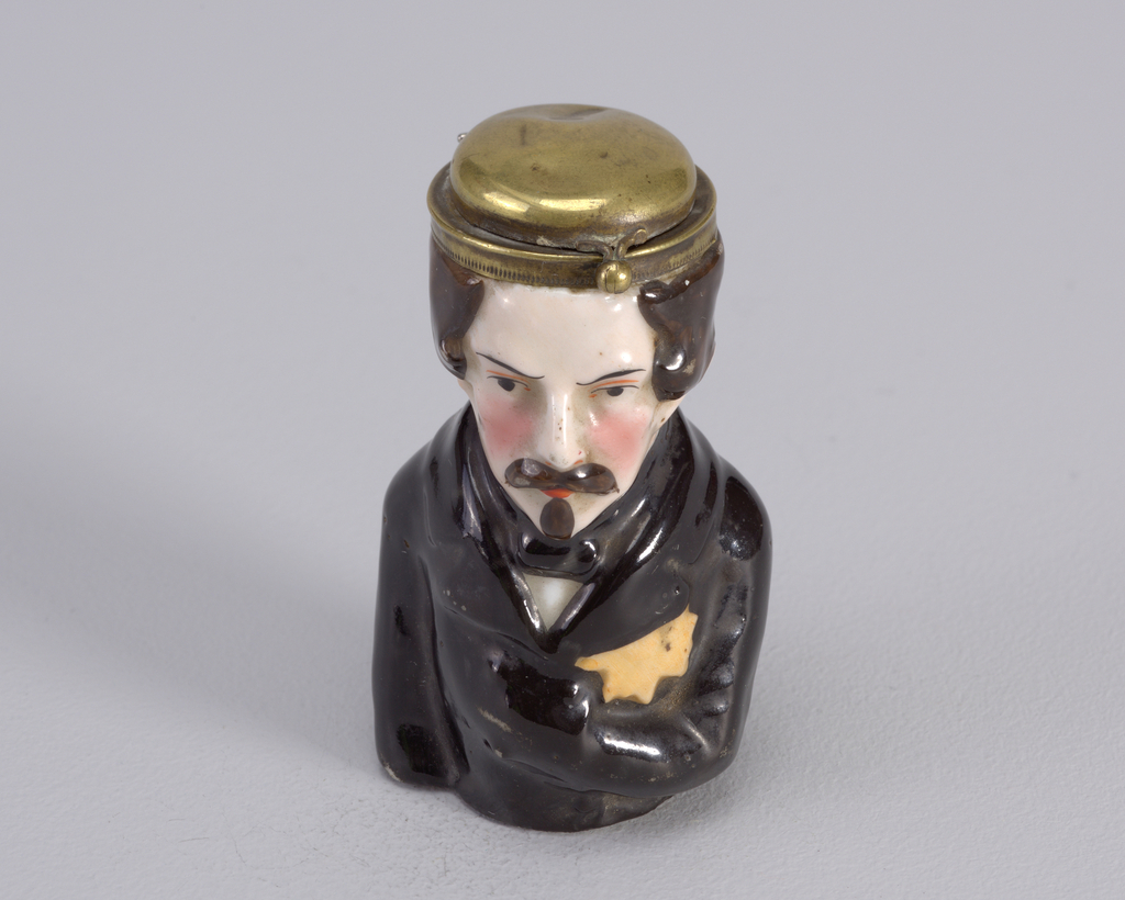 Matchsafe; porcelain, metal; H x diam.: 8.9 x 4.6 cm (3 1/2 x 1 13/16 in.); Gift of Stephen W. Brener and Carol B. Brener; 1982-23-276