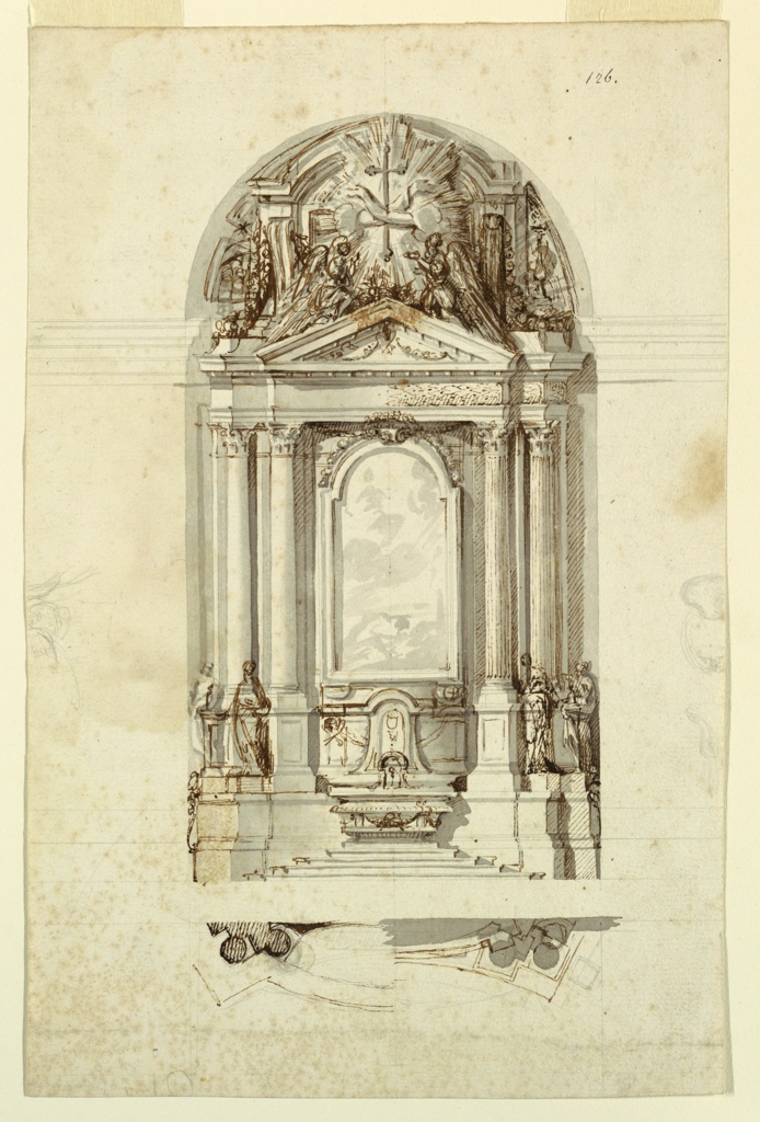 Drawing, Design for an Altar; Designed by Luigi Vanvitelli (Italian, 1700 – 1773); Italy; Museum purchase through gift of various donors and from Eleanor G. Hewitt Fund; 1938-88-3514