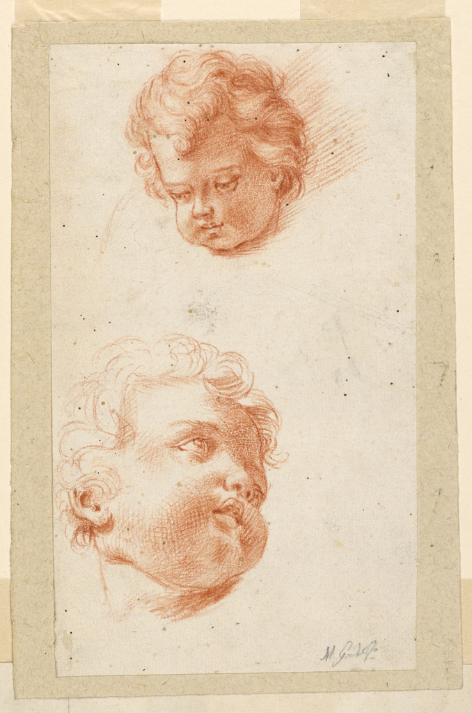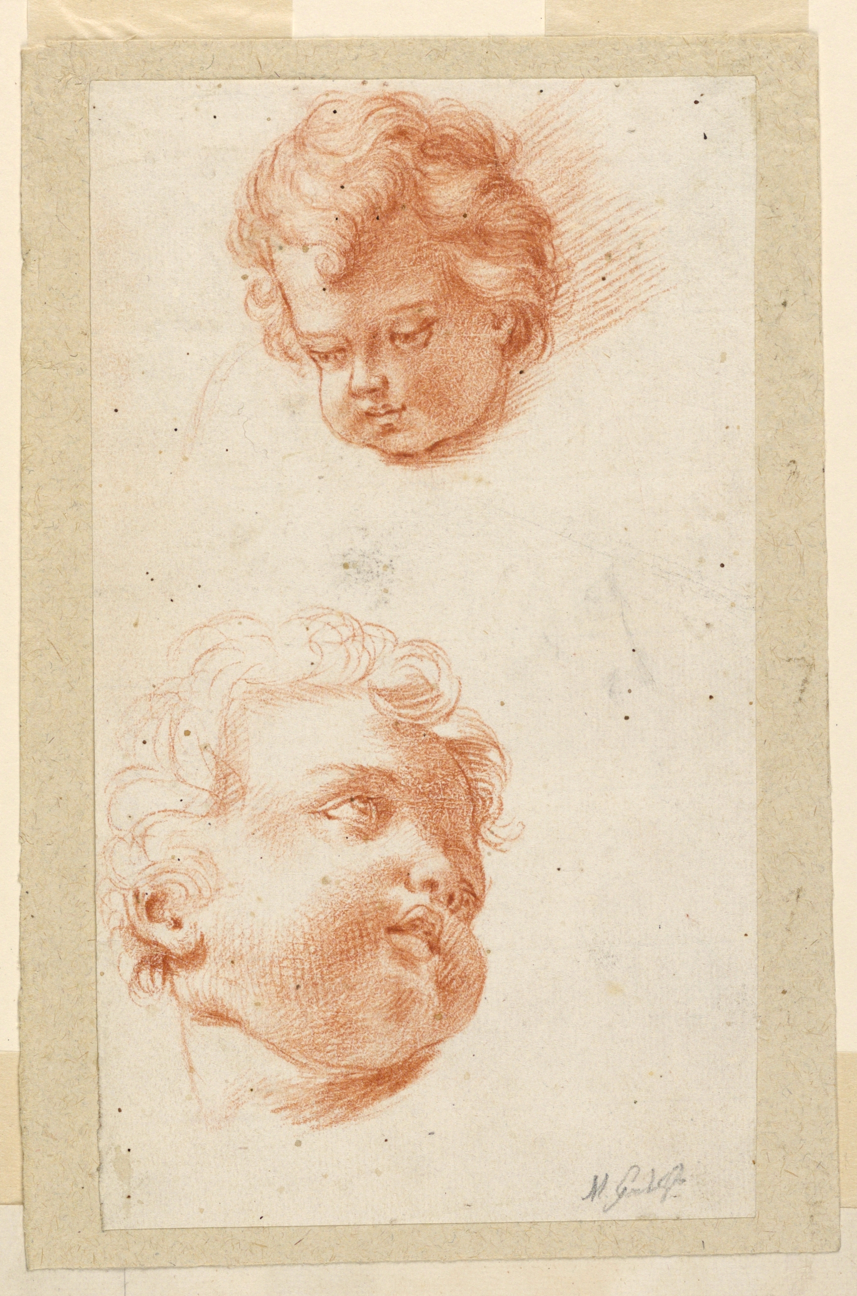 Drawing, Studies: Two heads of children; Mauro Gandolfi (Italian, 1764–1834); Italy; red crayon on paper; 19.2 x 11.2 cm (7 9/16 x 4 7/16 in.); Museum purchase through gift of various donors and from Eleanor G. Hewitt Fund; 1938-88-4363