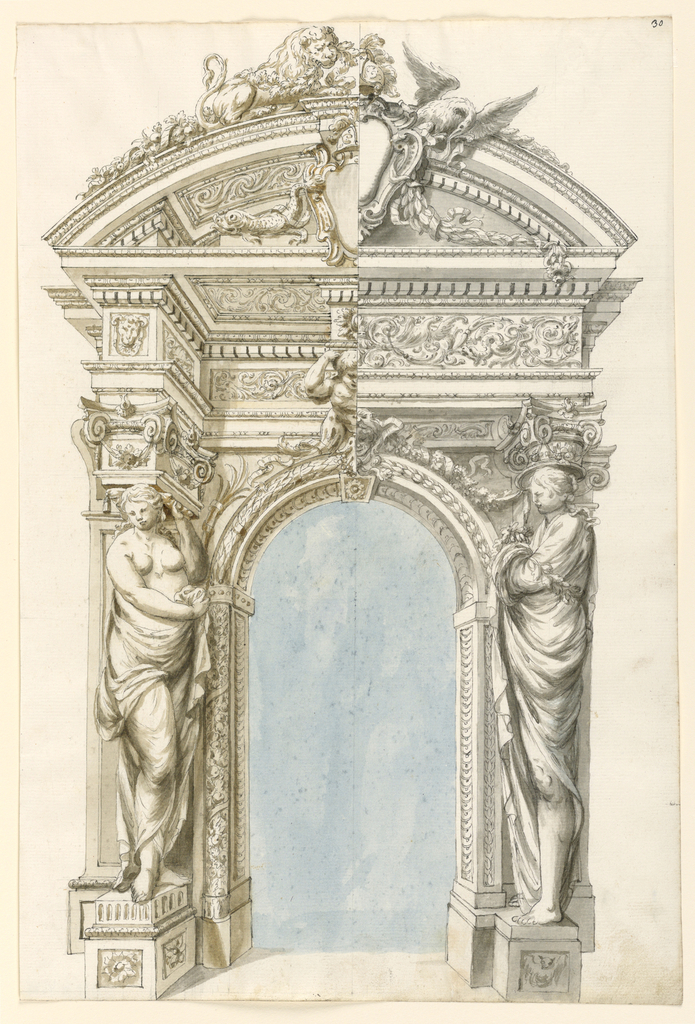 This is a Drawing. We acquired it in 1938. Its medium is pen and black ink with brown, gray and blue wash and traces of graphite support: off-white laid paper. It is a part of the Drawings, Prints, and Graphic Design department.