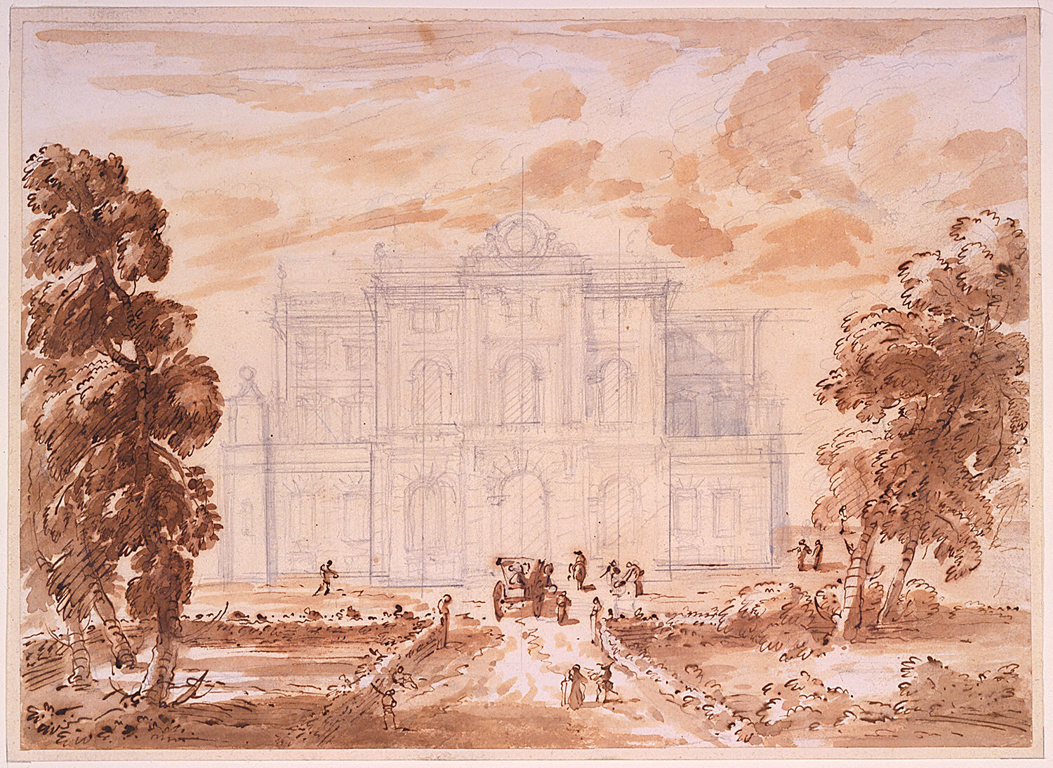 This is a Drawing. It was designed by Carlo Marchionni. It is dated 1755–60 and we acquired it in 1938. Its medium is pen and brown ink, brush and brown, gray washes, graphite on off-white laid paper. It is a part of the Drawings, Prints, and Graphic Design department.