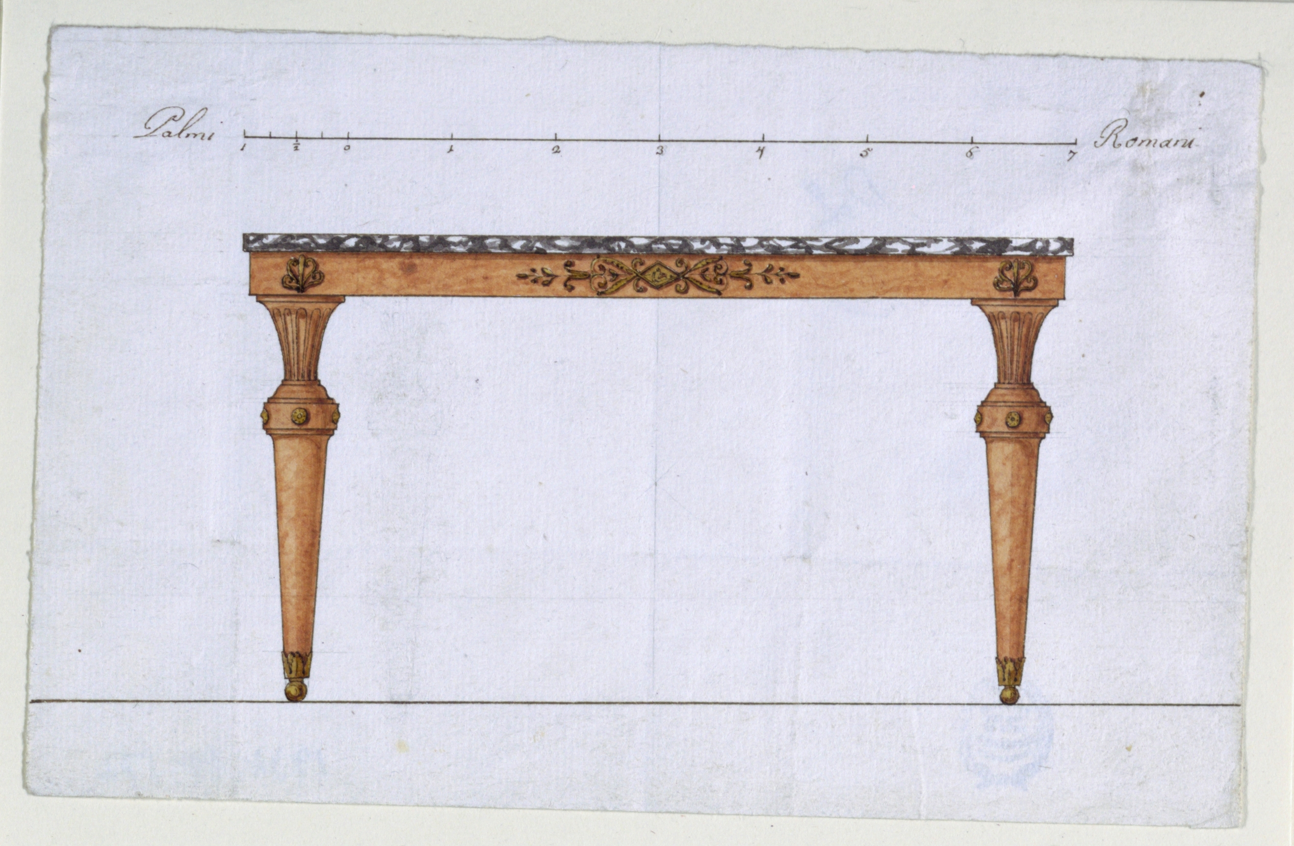 Drawing, Design for a Console Table; Italy; pen and black ink, brush and brown and gray watercolor, graphite on paper; 11.9 × 18.8 cm (4 11/16 × 7 3/8 in.); Museum purchase through gift of various donors and from Eleanor G. Hewitt Fund; 1938-88-577