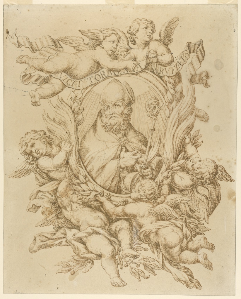 Drawing, Angels with a Medallion Representing the Martyred Bishop St. Rufinus