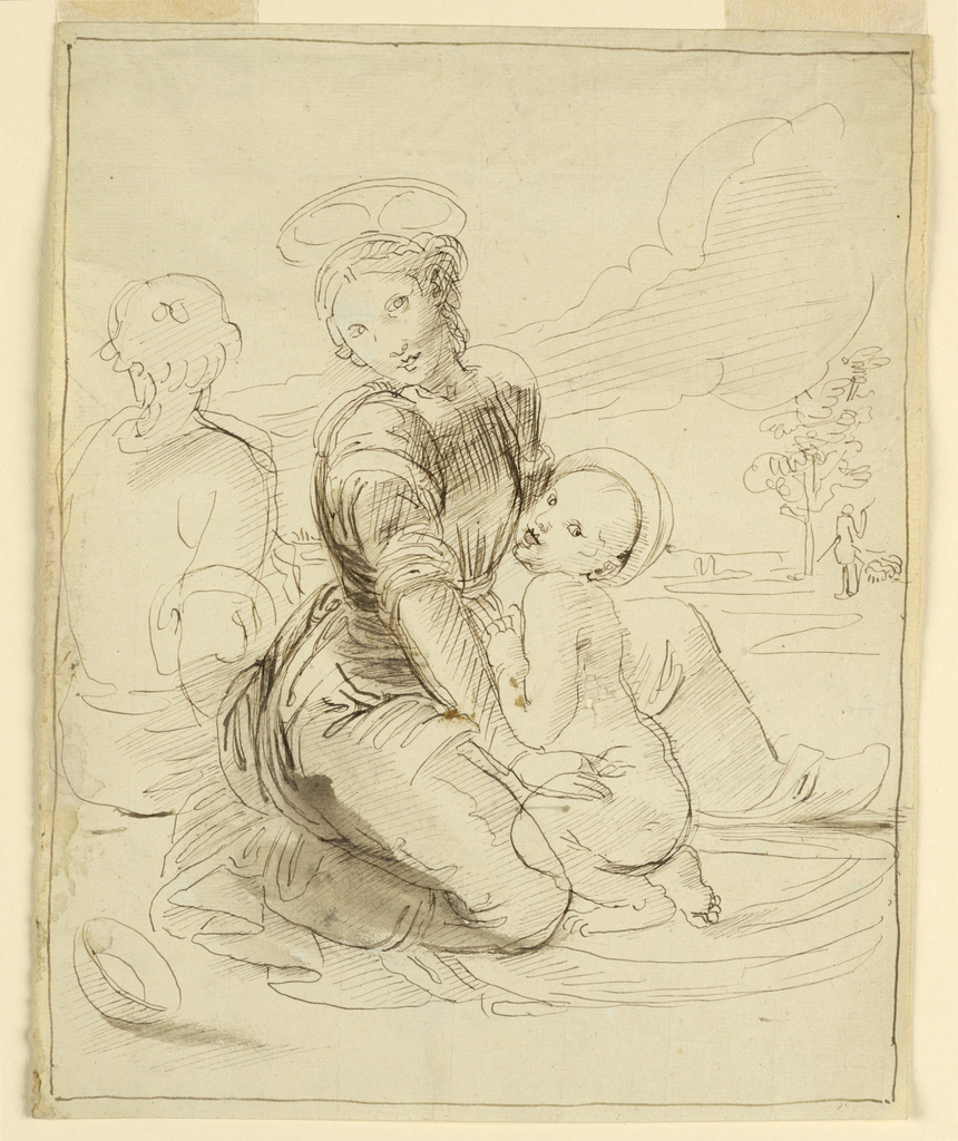 Drawing, The Holy Family; Fortunato Duranti (Italian, 1787 - 1863); Italy; pen and ink on light green paper; 24.2 × 19.4 cm (9 1/2 × 7 5/8 in.); Museum purchase through gift of various donors and from Eleanor G. Hewitt Fund; 1938-88-8056