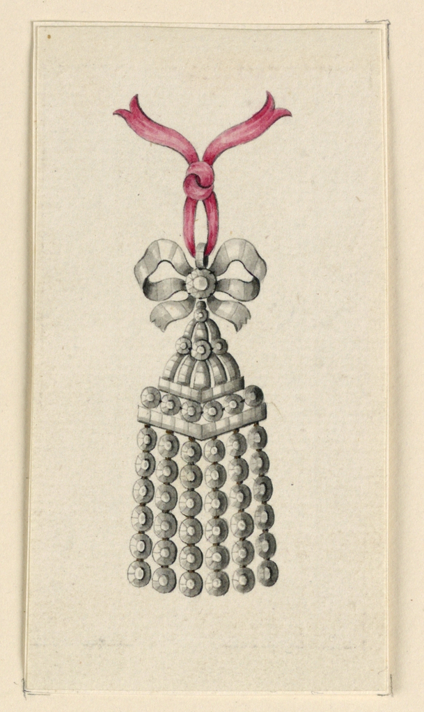 Drawing, Design for a Pendant; Italy; pen and black ink, brush and gray, red watercolor on light green paper; 10.9 × 5.9 cm (4 5/16 × 2 5/16 in.); Museum purchase through gift of various donors and from Eleanor G. Hewitt Fund; 1938-88-817