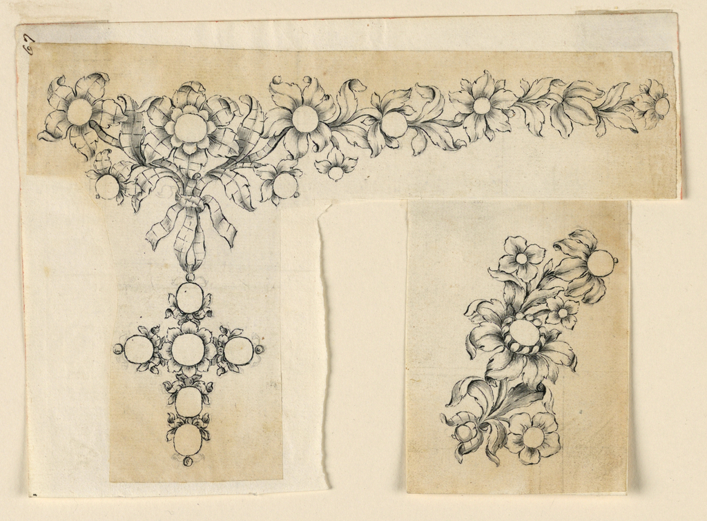 Drawing, Design for a Necklace; Designed by Giovanni Sebastiano Meyandi (Italian, active 1762 - 1794); Italy; pen and black ink, brush and gray watercolor, graphite on paper; 13.1 × 19.5 cm (5 3/16 × 7 11/16 in.); Museum purchase through gift of various donors and from Eleanor G. Hewitt Fund; 1938-88-881