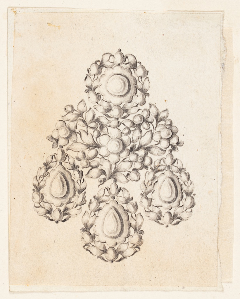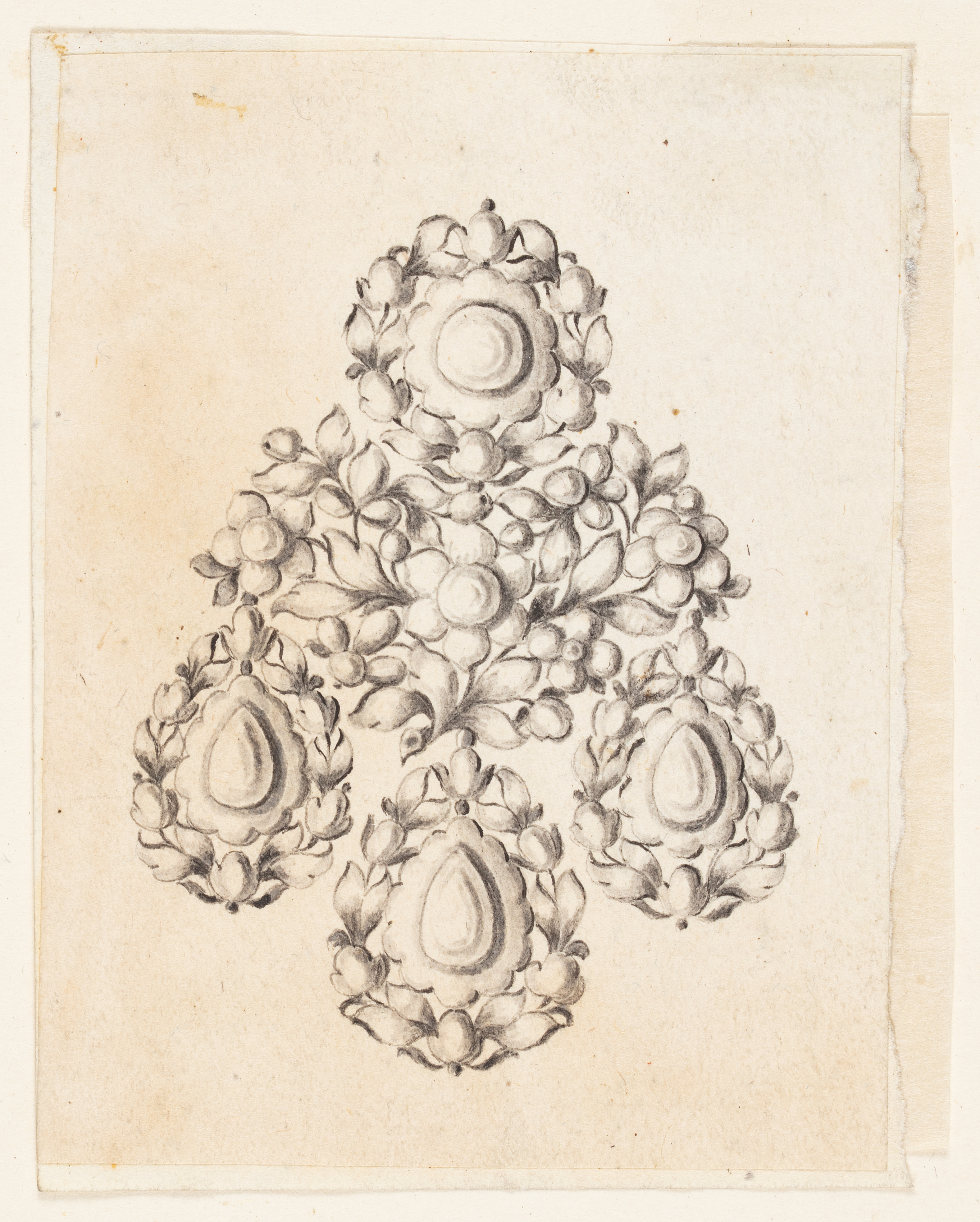 Drawing, Design for an Earring; Designed by Giovanni Sebastiano Meyandi (Italian, active 1762 - 1794); Italy; pen and black ink, brush and gray watercolor on paper; 8.2 × 6.2 cm (3 1/4 × 2 7/16 in.); Museum purchase through gift of various donors and from Eleanor G. Hewitt Fund; 1938-88-887
