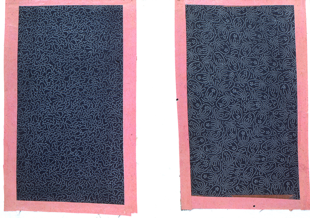 This is a Sample book. It is dated 19th century and we acquired it in 1939. Its medium is silk (?) and its technique is stencil-dyed. It is a part of the Textiles department.