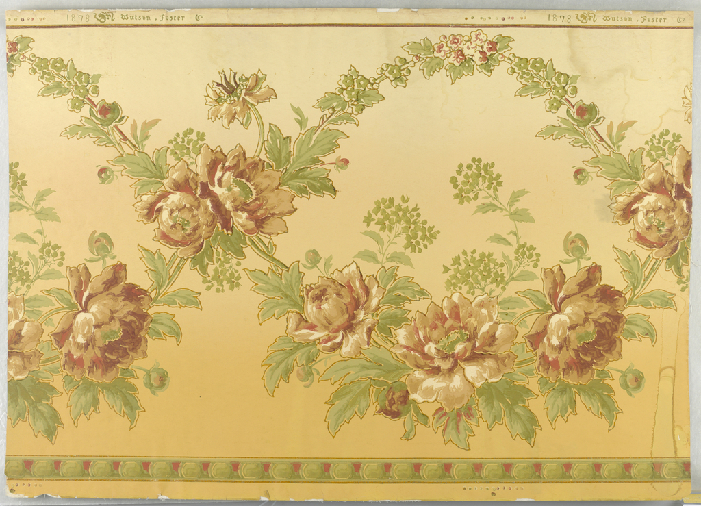 This is a frieze. It is dated 1890–1900 and we acquired it in 1939. Its medium is machine-printed, mica finish. It is a part of the Wallcoverings department.