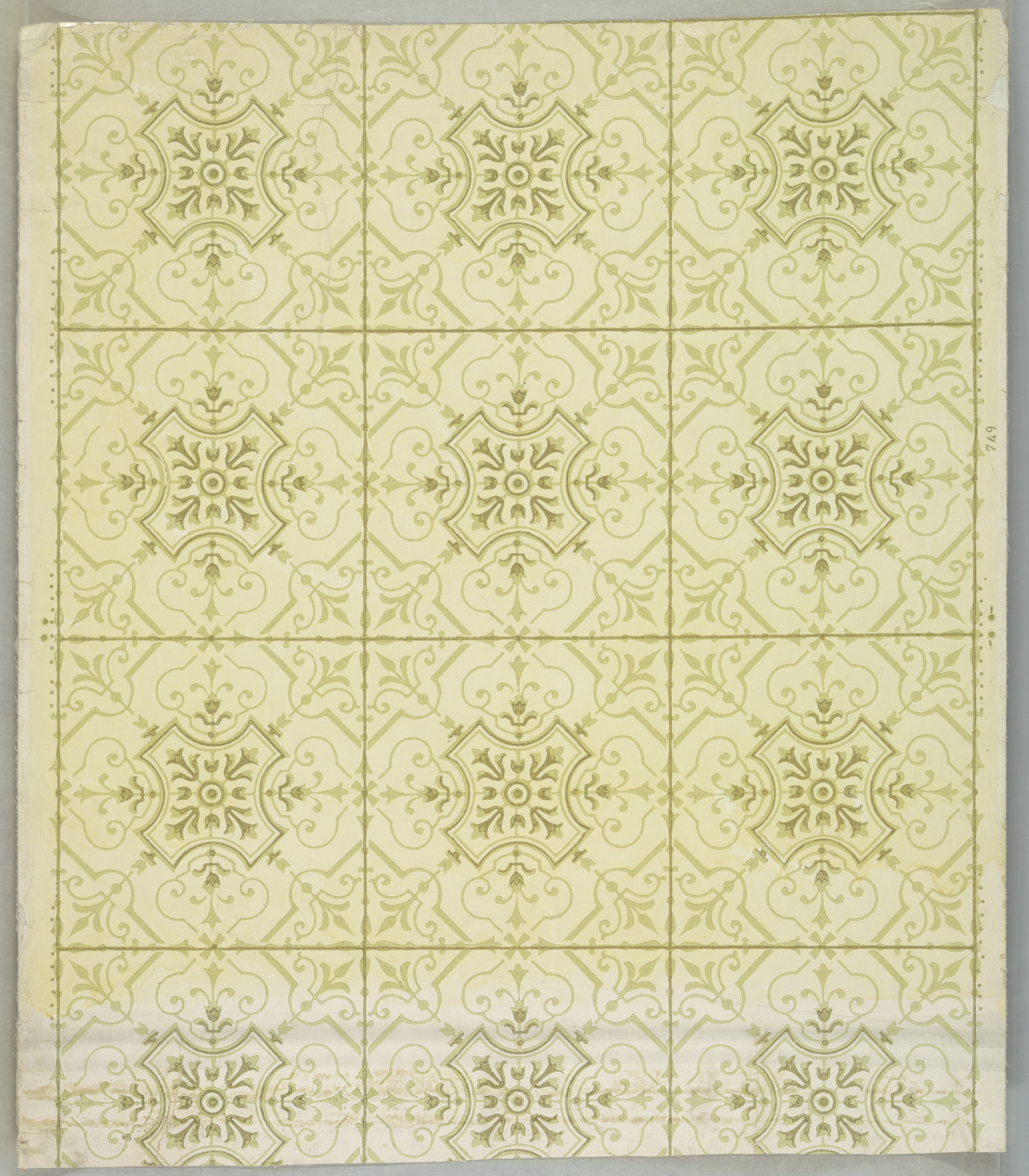 This is a Sidewall. It is dated ca. 1900 and we acquired it in 1940. Its medium is machine-printed paper, varnish. It is a part of the Wallcoverings department.
