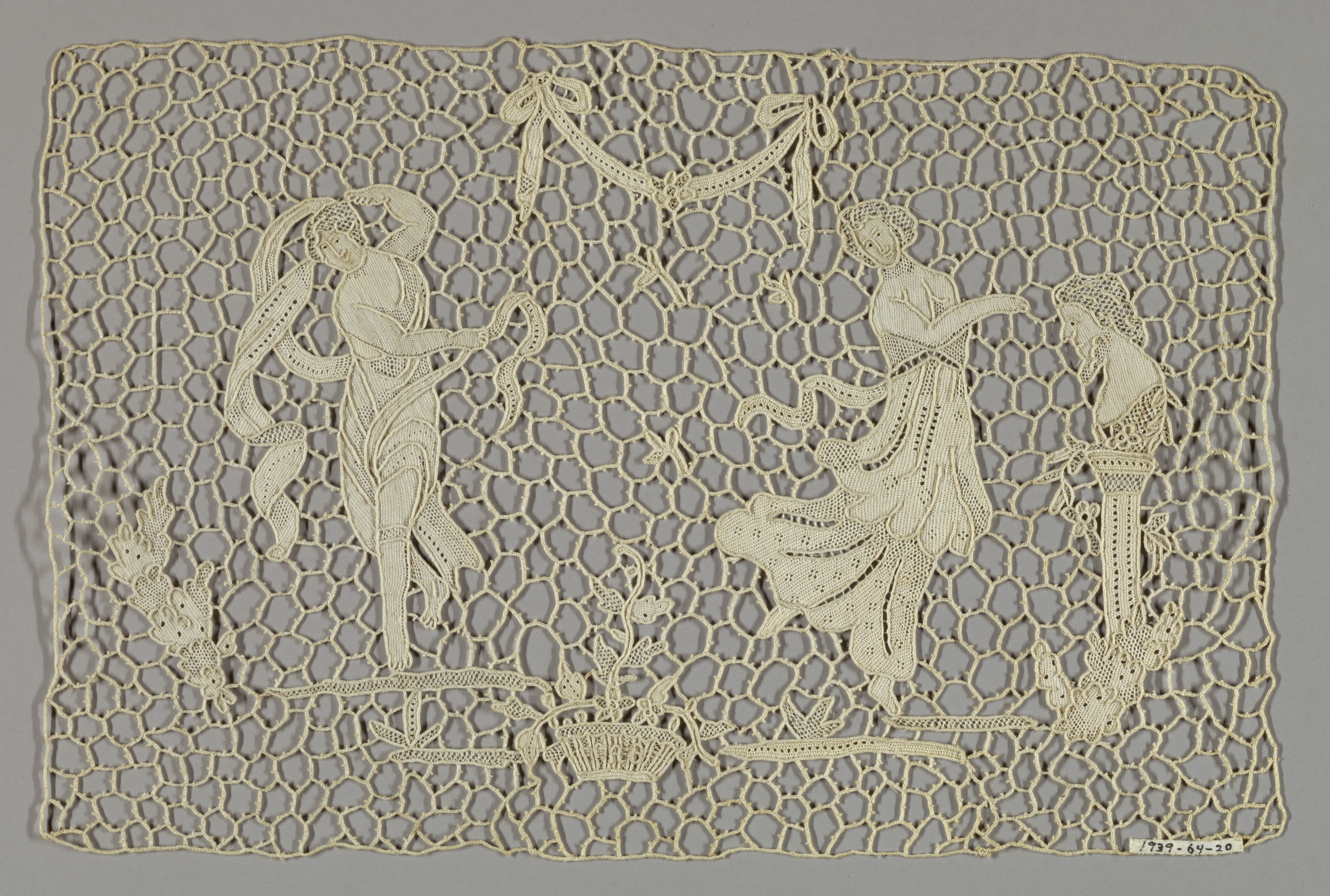 This is a panel. It is dated late 19th century and we acquired it in 1939. Its medium is linen and its technique is needle lace. It is a part of the Textiles department.