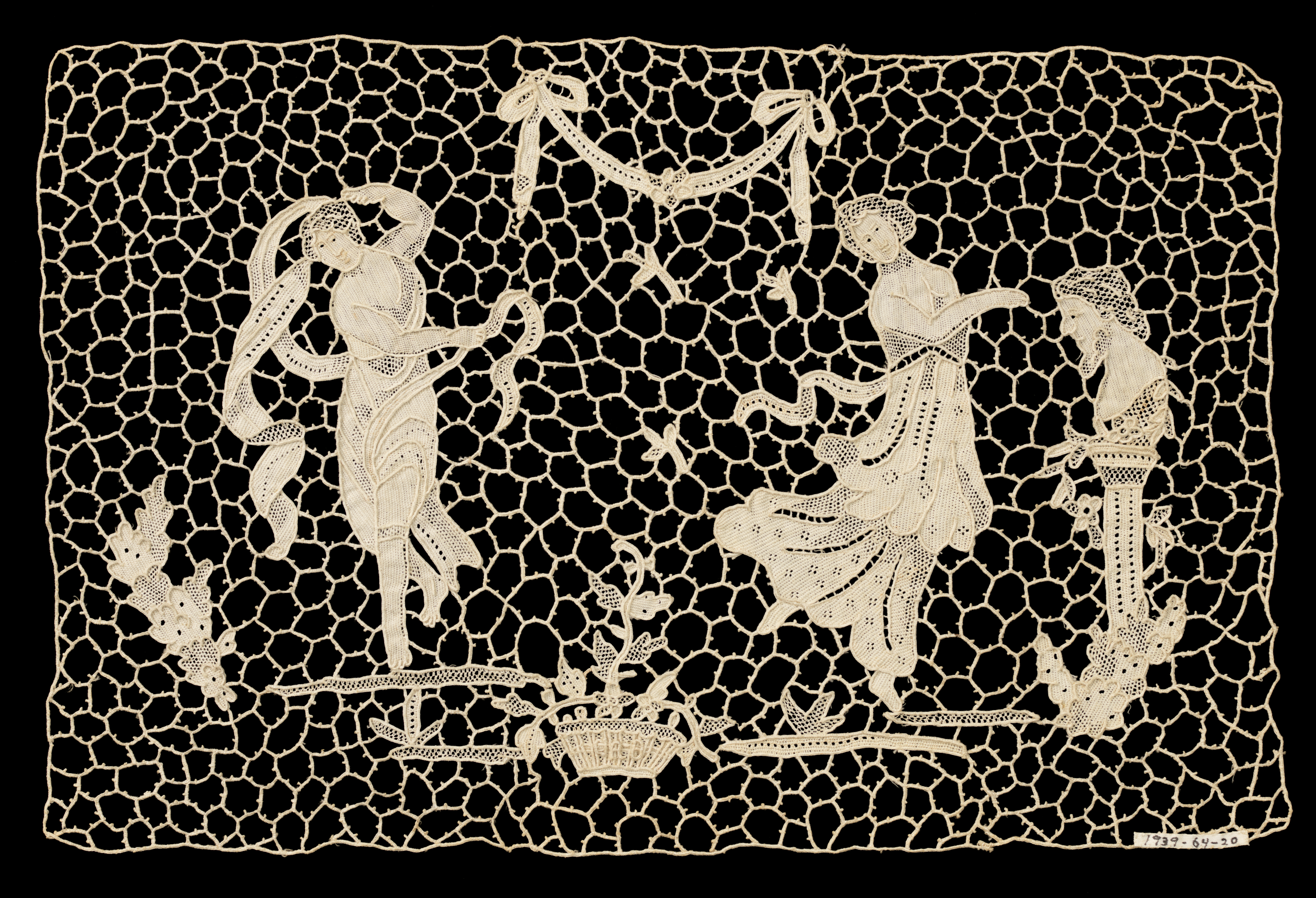 This is a panel. It is dated late 19th century and we acquired it in 1939. Its medium is linen and its technique is needle lace. It is a part of the Textiles department.