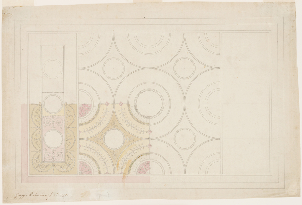 Drawing, Design for an Oblong Ceiling; Designed by George Richardson (British, ca. 1736 - 1813); England; pen and black ink, brush and watercolor, black chalk on paper; 33.2 x 50.4 cm (13 1/16 x 19 13/16 in.); Museum purchase from the Mary Hearn Greims Fund; 1940-21-15