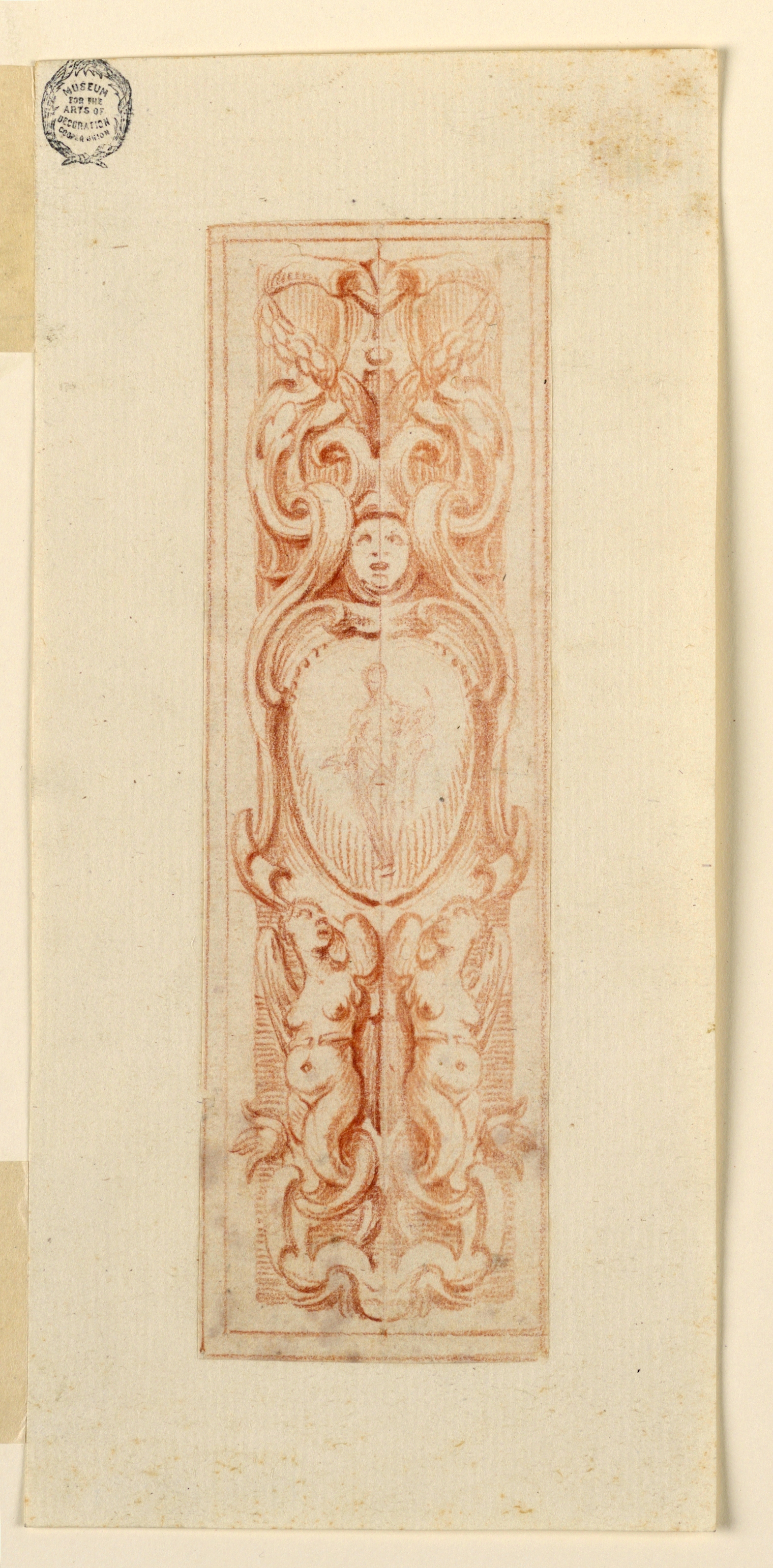 Drawing, Design for Stucco Decorations of Panels; Italy; red crayon on paper; 19 × 5.8 cm (7 1/2 × 2 5/16 in.); Museum purchase from the Mary Hearn Greims Fund; 1940-21-39-2